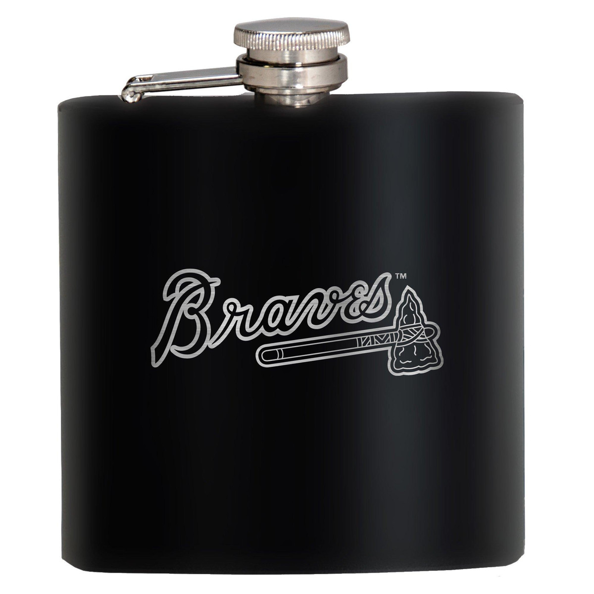 Show your team spirit! This Atlanta Braves Stealth Hip Flask, made of kitchen-grade 18/8 stainless steel, holds 6 fluid ounces. It is powder-coated in a black matte finish and features laser-etched team graphics. Measures 3.75 in. x 1 in. x 4.25 in.