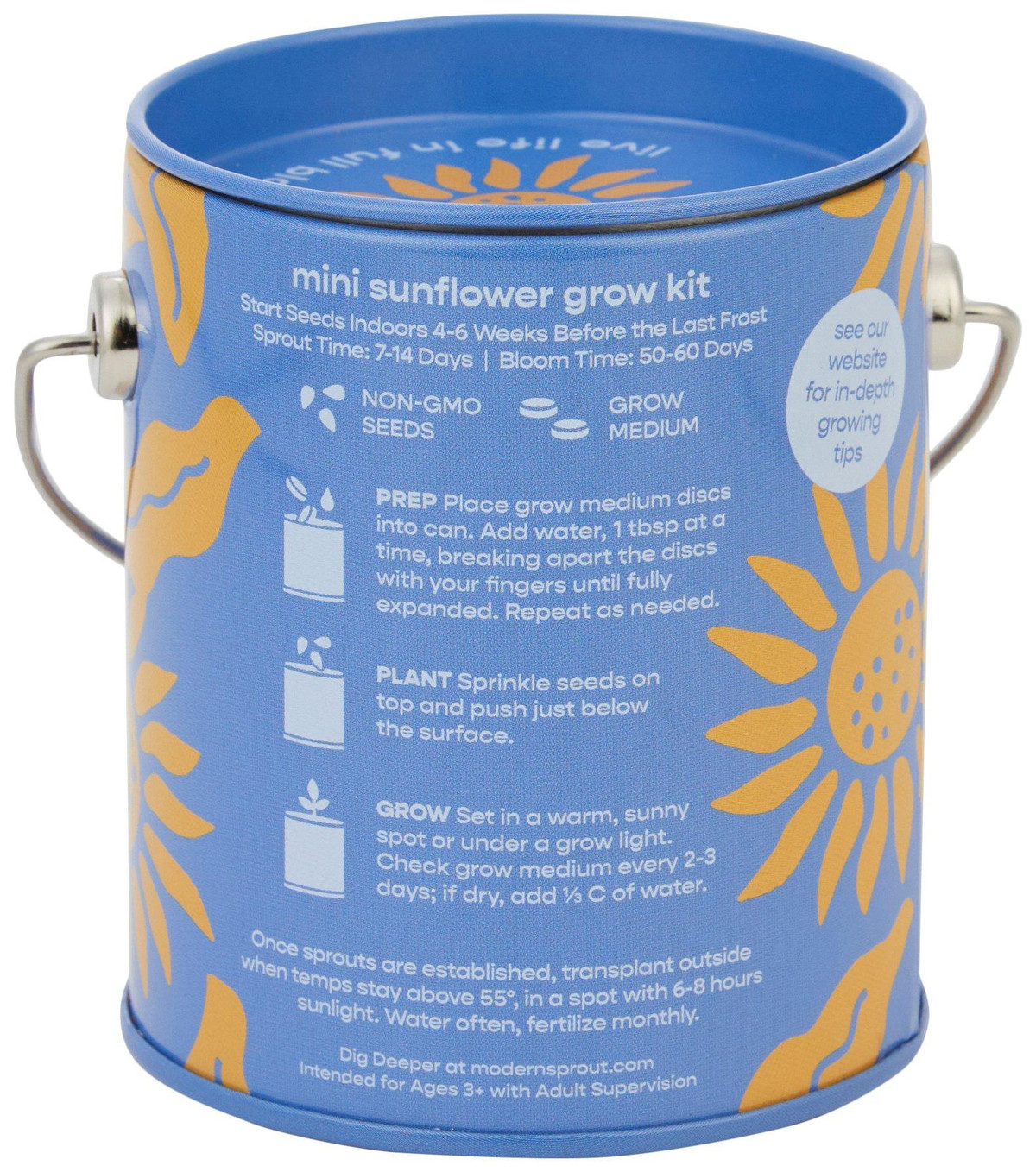 Brighten someones day with the Bada Bloom Mini Sunflower Grow Kit, a playful gift tucked into a printed mini paint can thats as charming as it is functional. Easy to grow and fun to gift, this kit includes everything needed to start sunflowers indoors, with seed-to-harvest support for confident growing. Once the blooms fade, reuse the colorful half-pint can for keepsakes, crafts or storage. For ages 3+. Measures approximately 3.5 in x 3 in round.