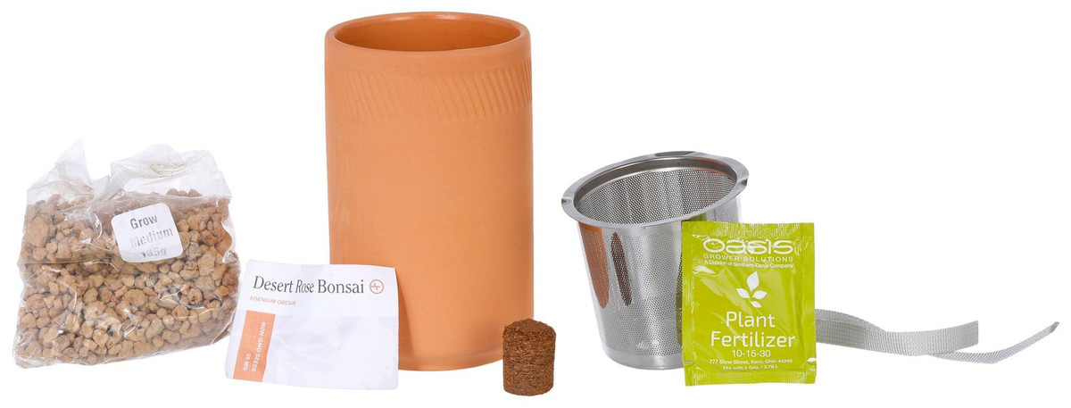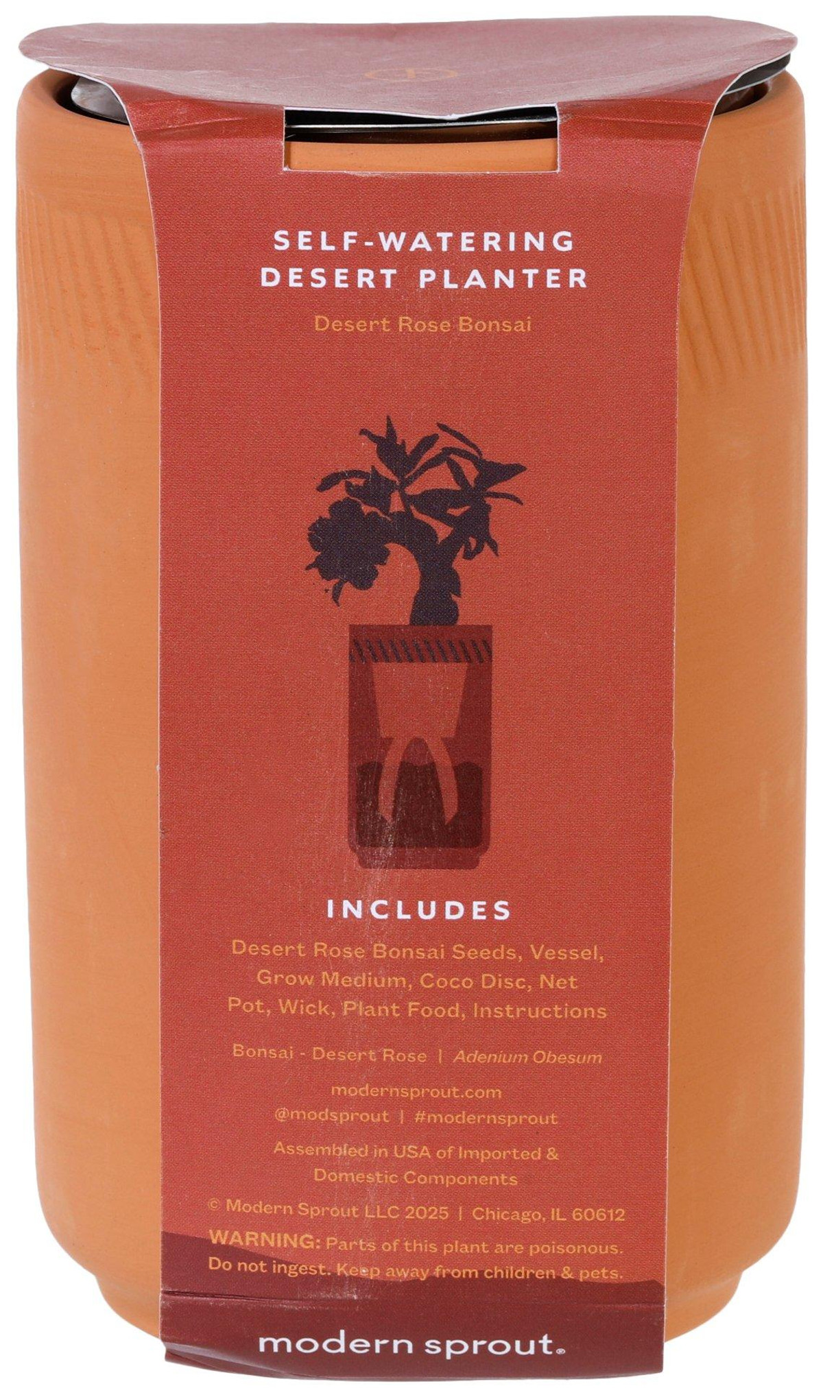 Cultivate calm with the Desert Rose Bonsai Hydro Grow Kit from Modern Sprout. Housed in a sleek terracotta vessel, this self-watering kit includes everything needed to grow a resilient desert rose bonsai from seed. A thoughtful gift or desk accent, it brings modern style and low-maintenance greenery to any indoor space. Measures approximately 5.5 in x 3.5 in round.