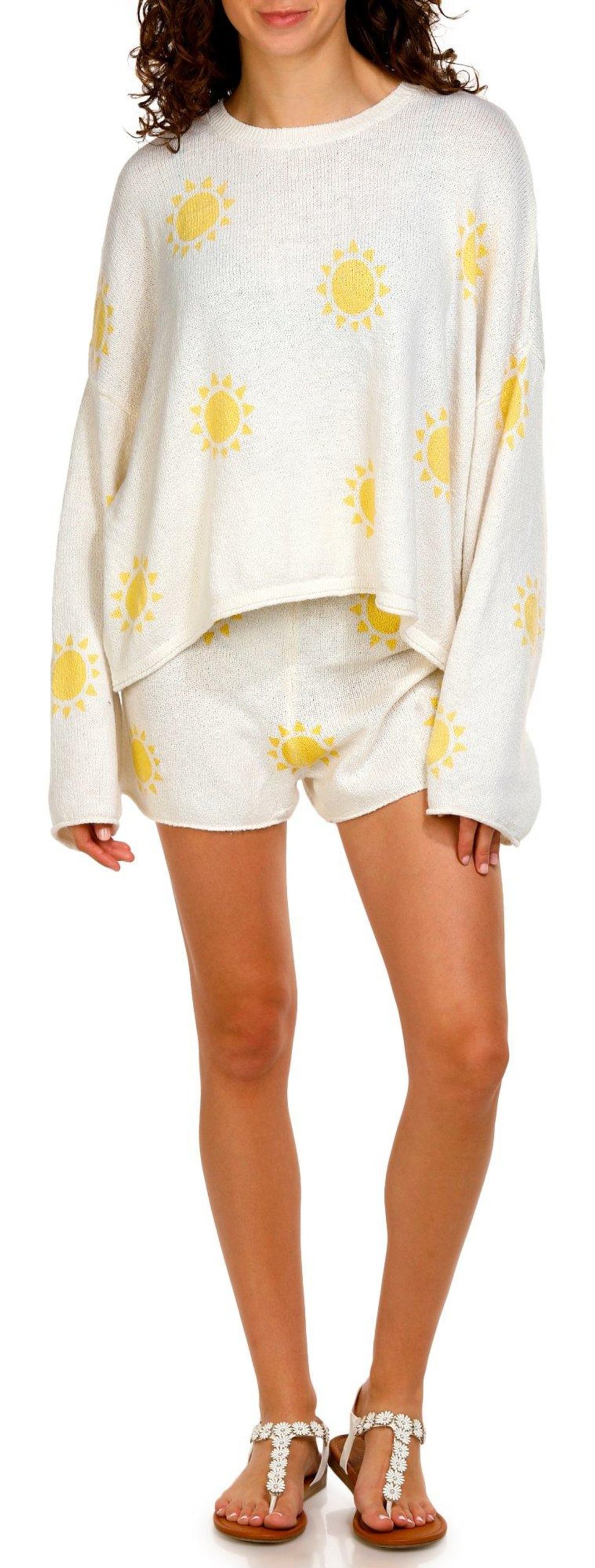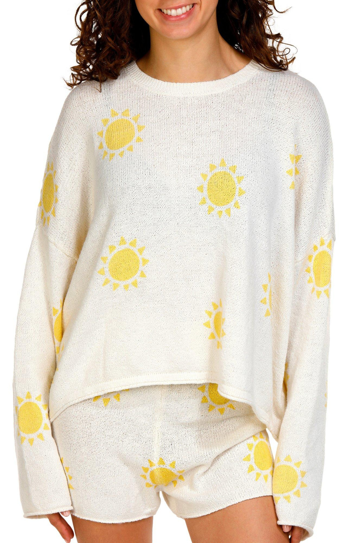 Elevate your casual wardrobe with the Juniors Long Sleeve Sunshine Motif Top. Crafted from 100% polyester, this top features a vibrant sun motif that adds a touch of cheer to any outfit. The crew neckline and long sleeves offer a classic look, while the soft feel ensures all-day comfort. Perfect for layering or wearing on its own, this top is a versatile addition to your collection.