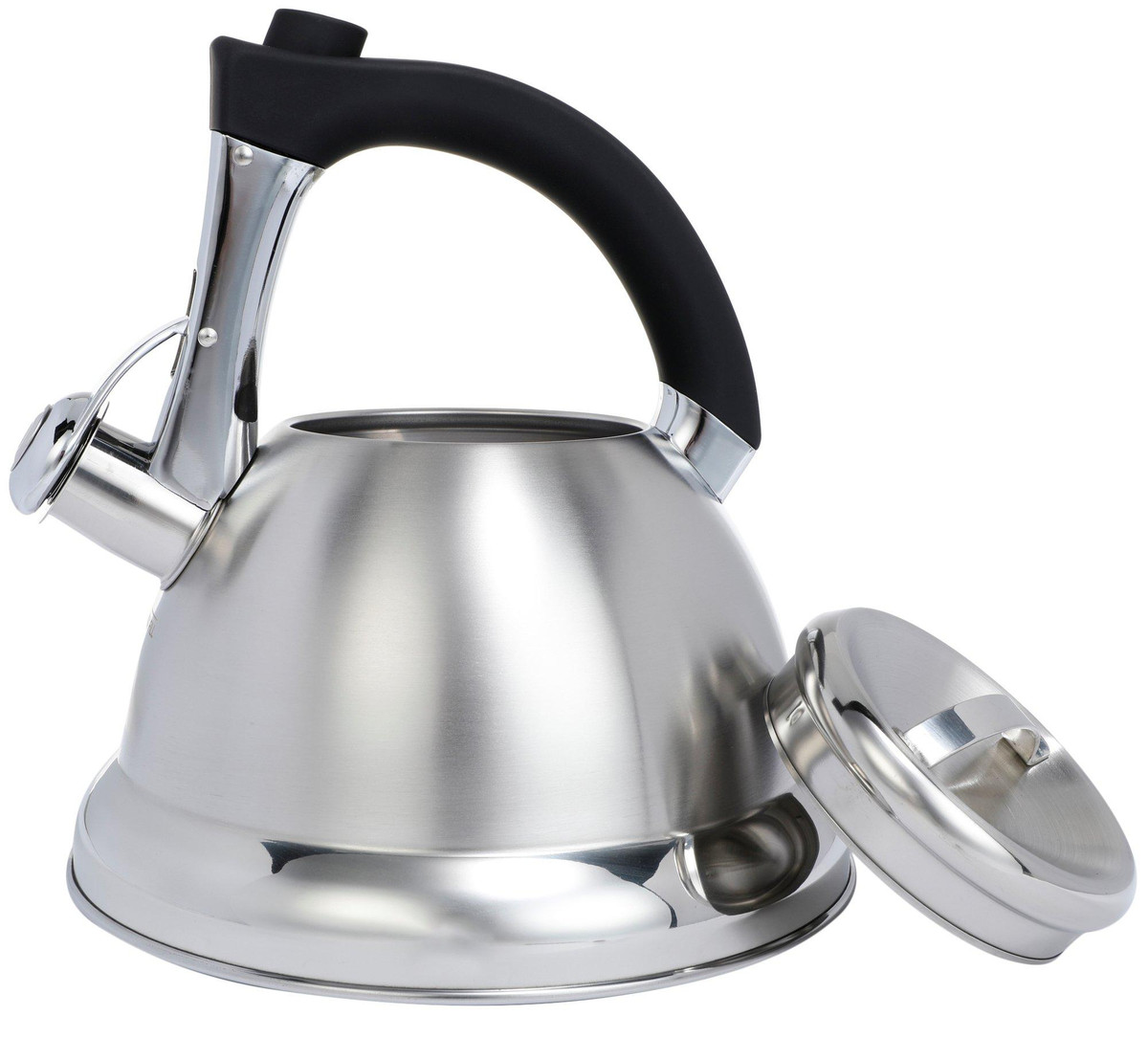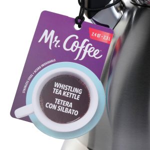 This simple and sleek tea kettle is made of high-quality stain and rust resistant stainless steel. It features an ergonomic handle for comfortable grip, as well as a push button to trigger the flip-up spout cover for an easy and effortless use. Perfect for coffee, tea or hot chocolate! Holds 2.4 quarts.