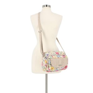 Our Bonne Crossbody bag is an essential accessory for your wardrobe. The soft tone colors can be paired with any outfit. This medium size bag includes three main compartments, one slip closure pocket, two front wall slip pockets, and one back wall zip pocket. Measures approximately 10 in. L x 3 in. W x 7 in. H.