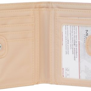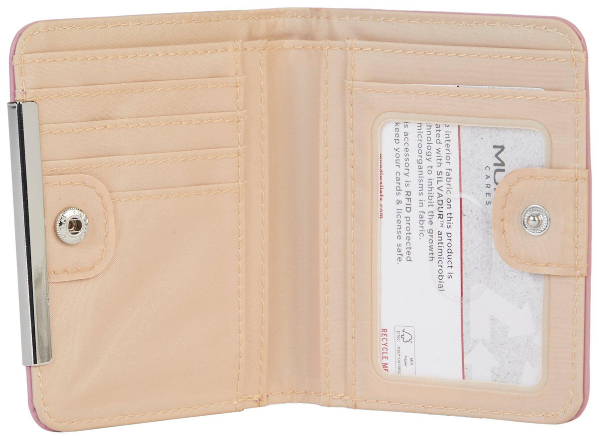 Protect your valuables with style using the Mundi women’s wallet. Crafted from faux leather, this mini bifold style keeps your cards and cash safe with RFID blocking technology. It has 4 inner slip pockets, 1 ID window, along with a bill pocket and back zip pocket for organizing your receipts or other small items. Measurements: .5 Depth/Inches, 3.5 Width/Inches