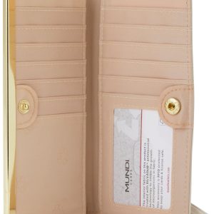 Ready to dominate your night out? The Mundi Mu Slim Clutch Wallet brings the heat with RFID-blocking tech, sleek black faux leather, silver-tone hardware, and a snap closure. Youve got 12 card slots, 2 slip pockets, 1 ID window, and a back zip pocket for fast access. Slim, secure, and stylish. Measures 6.75 L x 3.5 H x 0.63 W.