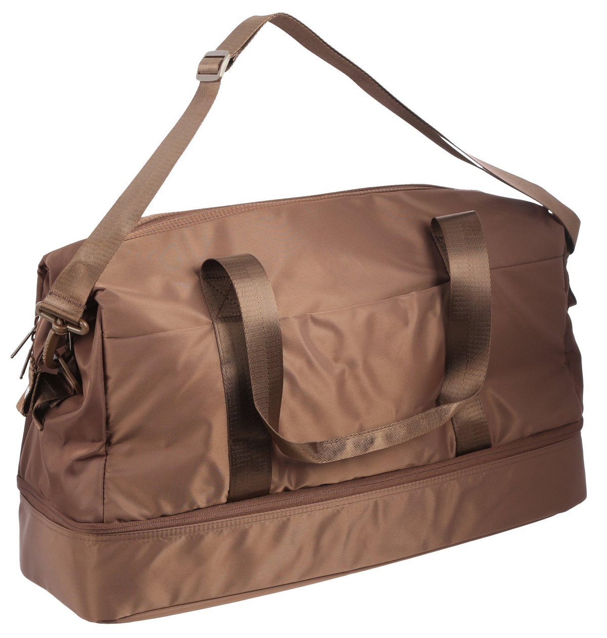 Make sure none of your essentials are left behind thanks to this Toronto Weekender Duffel Bag! It features a removeable shoulder strap, top zip closure, outside slip pocket and zip compartment, and silver tone hardware. Measures 18 in x 11 in x 7 in.