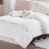 A polka dot print provides a home for your feline friend in this amusing set that includes all your bed needs. The comforter features a minimal pink-on-white polka dot print with a solid white reverse. The pillow sham(s) feature a sleeping cat face print with attached fabric ears to bring it to life. All items are made of a microfiber polyester and the comforter has a polyester fill. Set includes: 1 Comforter, 2 Shams (1 for Twin), 1 Flat Sheet, 1 Fitted Sheet and 2 Pillowcases (1 for Twin).