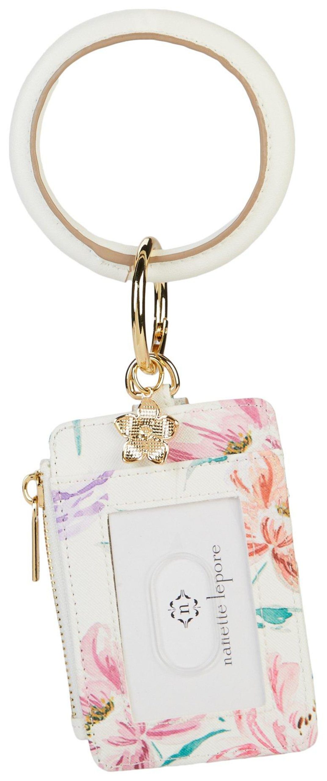 Stay stylish and organized with the Nanette Lepore Candi Card Case Flower Bracelet Walleta chic and multifunctional accessory designed for convenience and flair. Featuring a unique bracelet design and compact card case, it effortlessly combines fashion with practicality. Features removeable key ring and card case. Cardholder has 2 card slots with snap closure, 1 ID window and 1 zippered pocket. Measures: 4.75 in H x 3.25 in W x .25 in D.