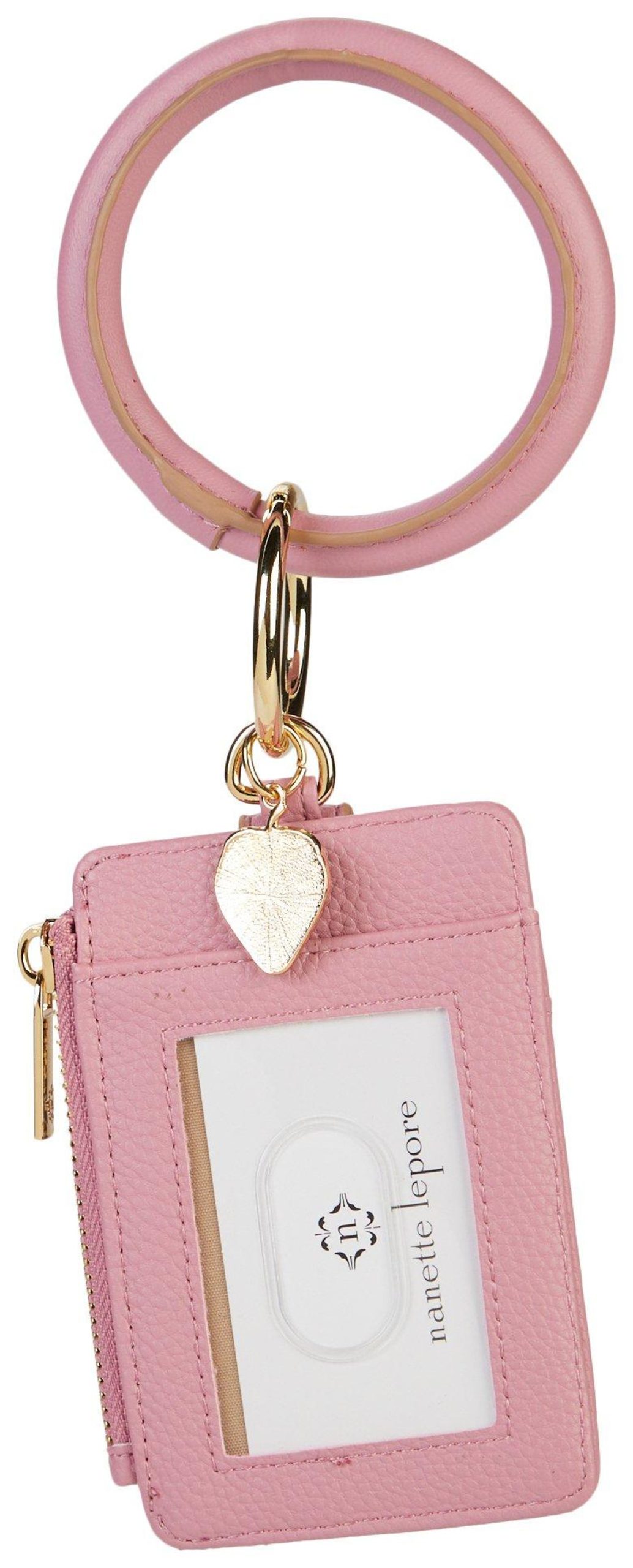 Stay stylish and organized with the Nanette Lepore Candi Card Case Fruit Charm Bracelet Walleta chic and multifunctional accessory designed for convenience and flair. Featuring a unique bracelet design and compact card case, it effortlessly combines fashion with practicality. Features removeable key ring and card case. Cardholder has 2 card slots with snap closure, 1 ID window and 1 zippered pocket. Measures: 4.75 in H x 3.25 in W x .25 in D.