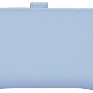 This Leza Bifold Wallet features a beautiful color design on a textured vegan leather, a rear zipper coin pocket, a front security strap snap pocket, and a flip open compartment with six card slots, four slip pockets, and a currency compartment. Bonus coordinating credit card and id case included. Measures approximately 5 in x 4 in.