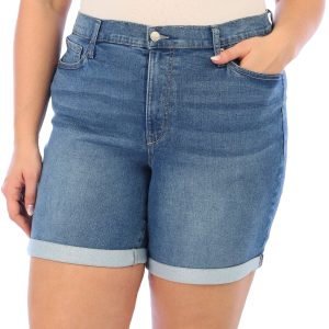 These women’s plus full cuff denim shorts feature a flattering 7-inch inseam for the perfect balance of comfort and coverage. Crafted from soft, stretchy denim, they offer a relaxed fit with a rolled cuff for a casual, laid-back look. Ideal for warm-weather days, these shorts are both stylish and versatile.