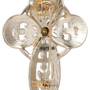 The Napier Crystal Pave Flamingo Pin is a dazzling and eye-catching brooch featuring a graceful flamingo design adorned with sparkling crystal pave accents. The intricate detailing of the flamingo, combined with the shimmering crystals, creates a vibrant and elegant piece that adds a touch of fun and sophistication to any outfit.