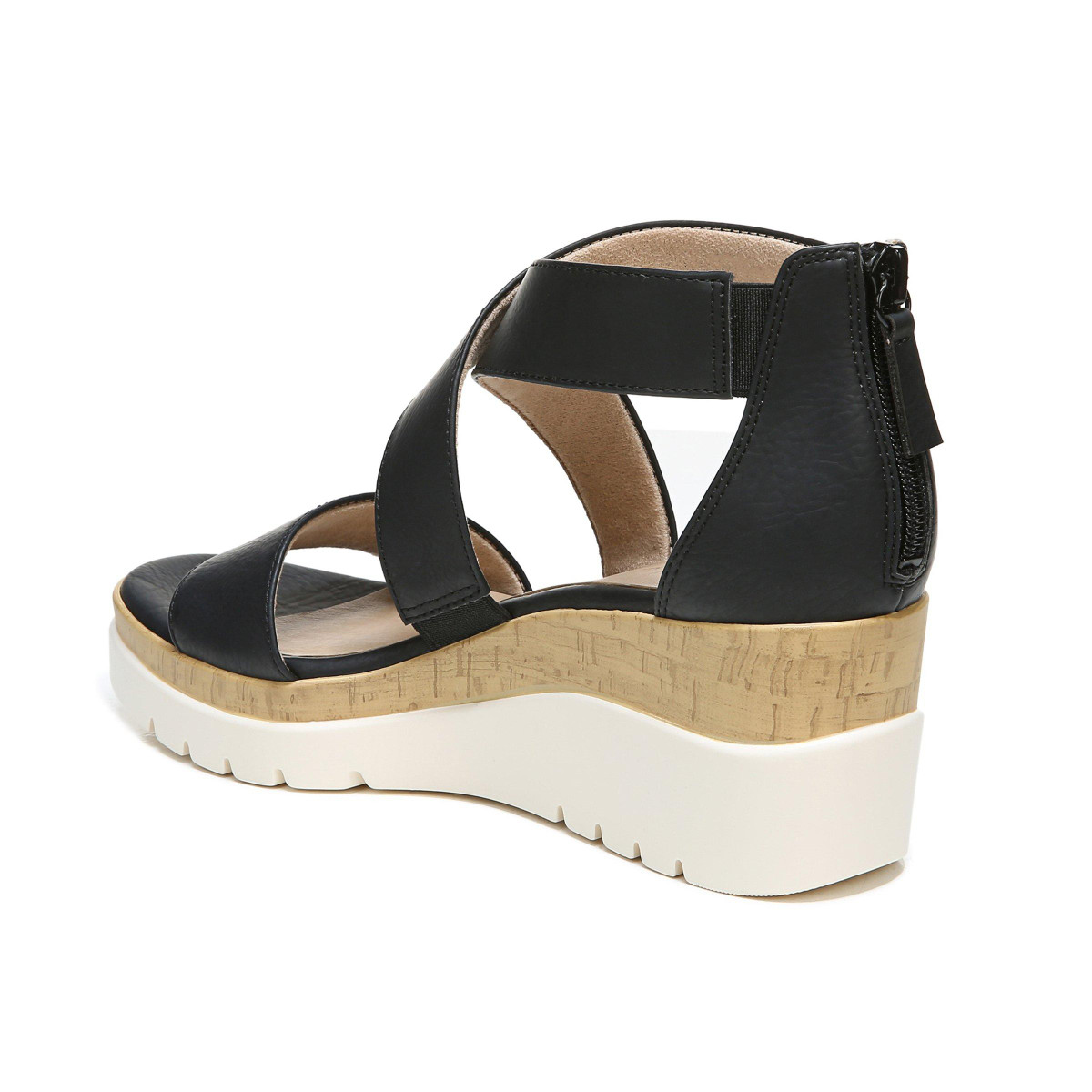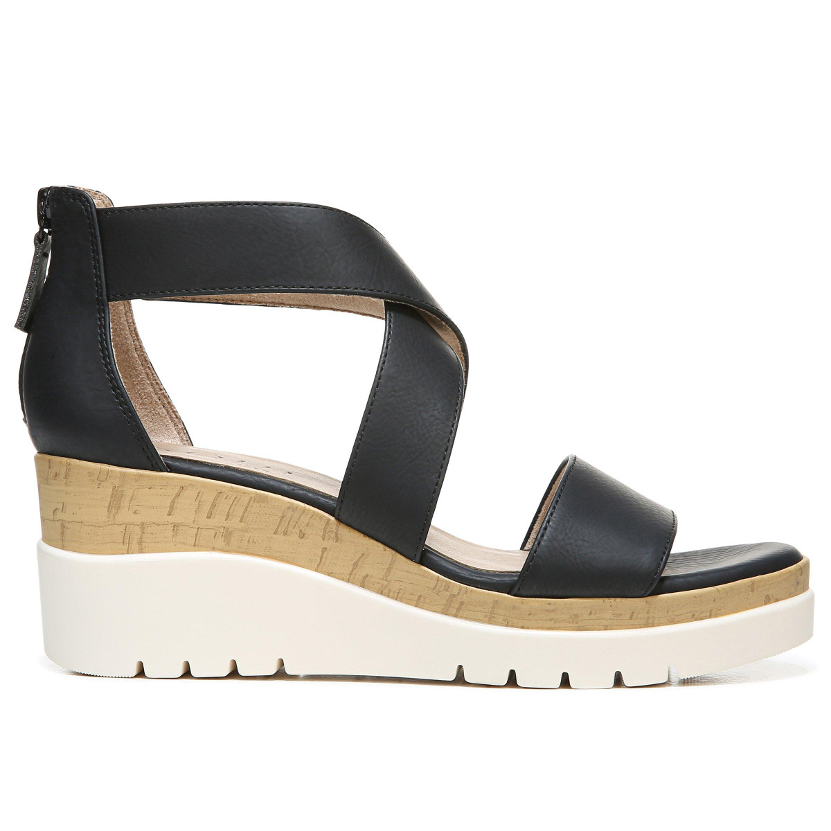 Your summer looks will get a whole lot stylish with these Goodtime platform wedge sandal. The sporty bottom and cork trim wedge are topped with a strappy upper. Antimicrobial socklining and memory foam with arch support boost your comfort.