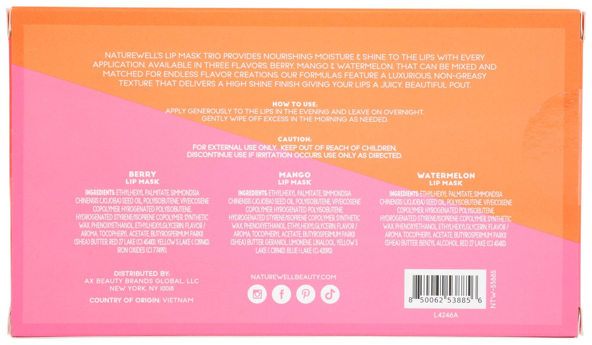 This lip mask trio provides nourishing moisture and shine to the lips with every application. Available in three flavors – Mango, Berry and Watermelon.
