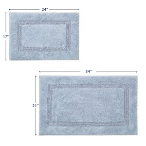 Step out of your shower onto the luxuriously soft Peniston Solid Bath Rugs. These 100% cotton tufted are excellent for everyday bathroom use as they are constructed for maximum absorbency. Available in a 2-piece set consisting of one 17 in. x 24 in. rug, and one 21 in. x 34 in. rug. Machine washable for easy care.