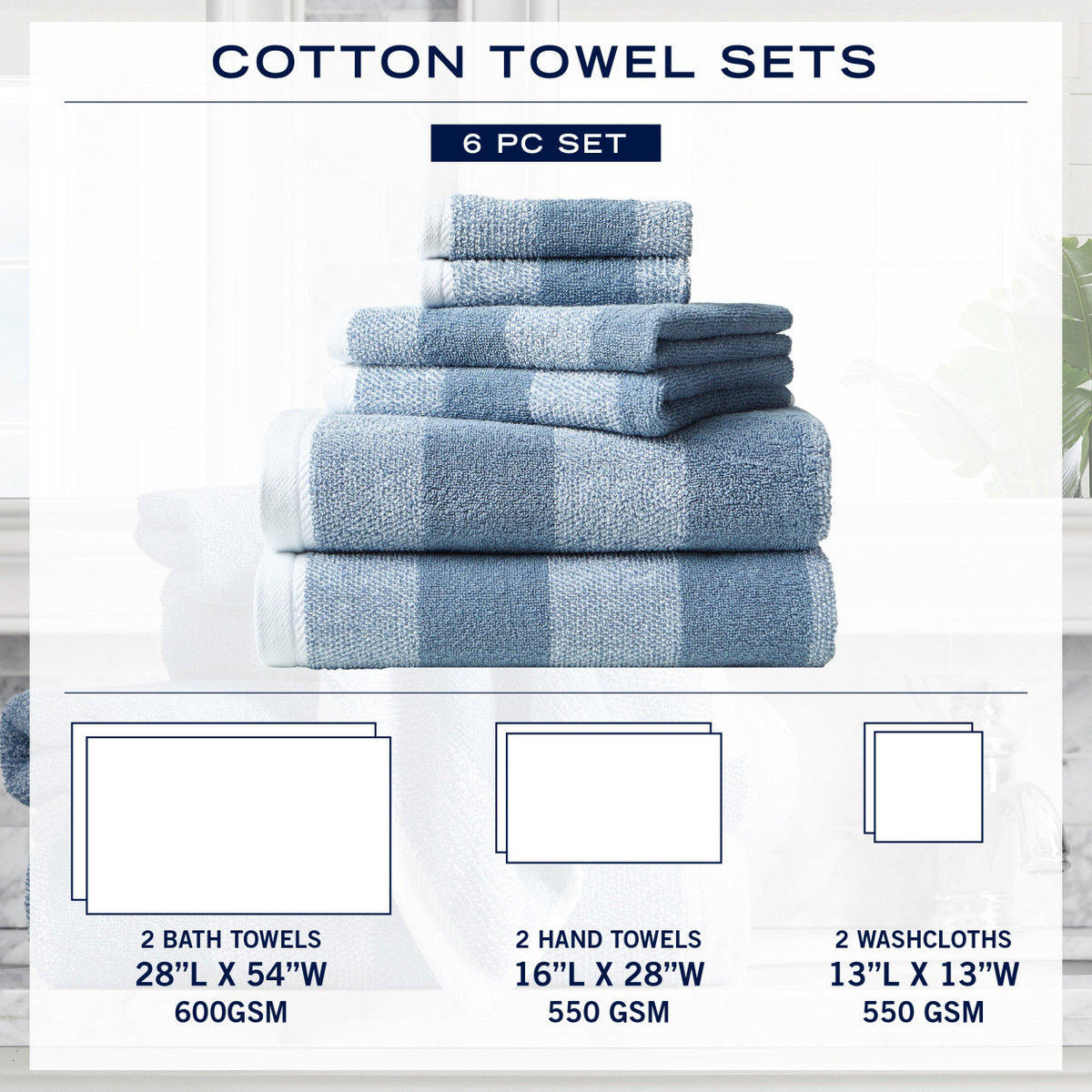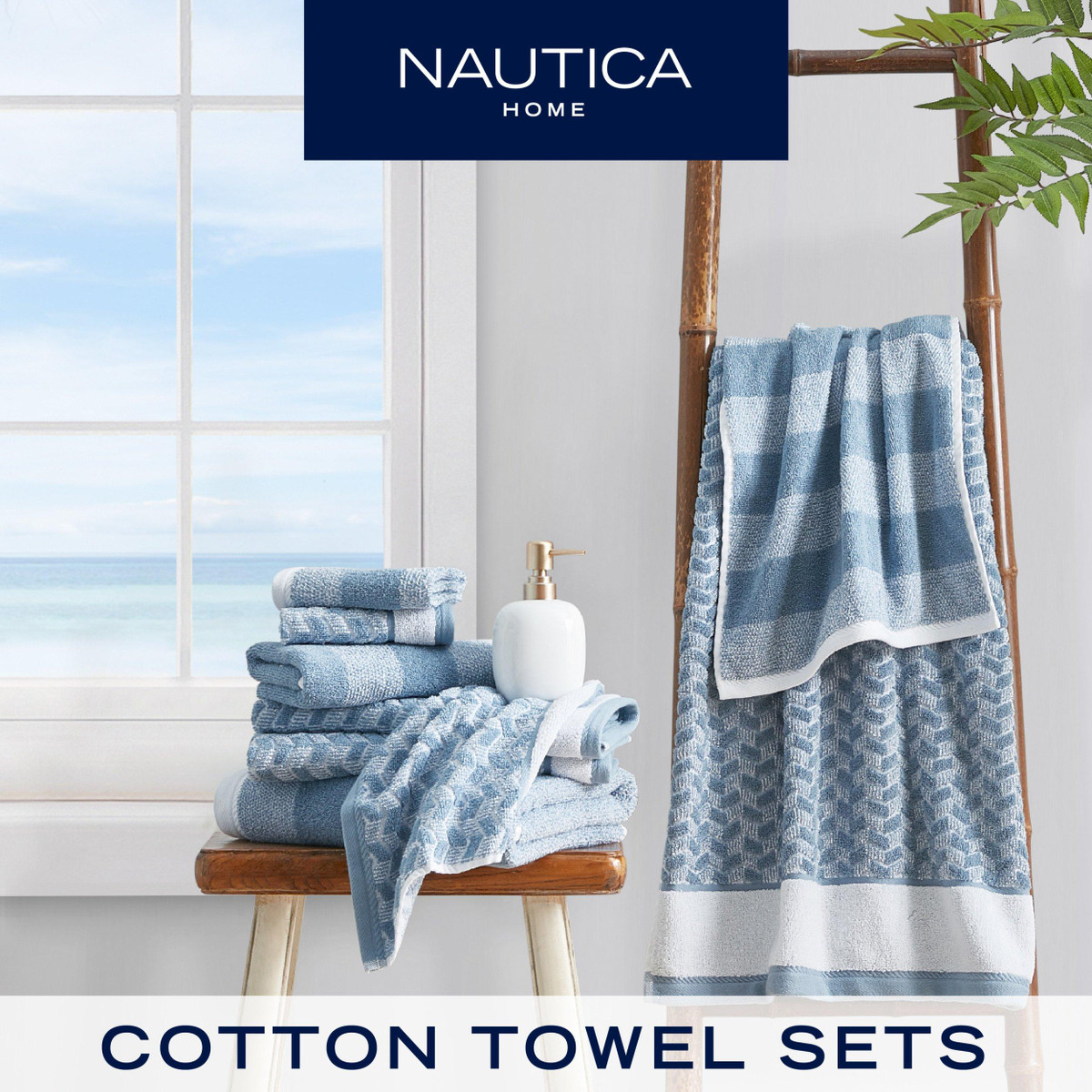The Nautica Oak Lake Towel Set is a luxurious 6-piece collection that combines style and comfort. Crafted from 100% cotton yarn dye terry, they feature mingled yarns to create a sense of dimension. Soft and medium weight, they offer a fluffy, soft feel with durable fibers for long-lasting use. Oeko Tex Certified, this set ensures environmental safety while elevating your bathroom. Includes 2 bath towels (54 in. x 28 in.), 2 hand towels (28 in. x 16 in.) and 2 washcloths (13 in. x 13 in.).
