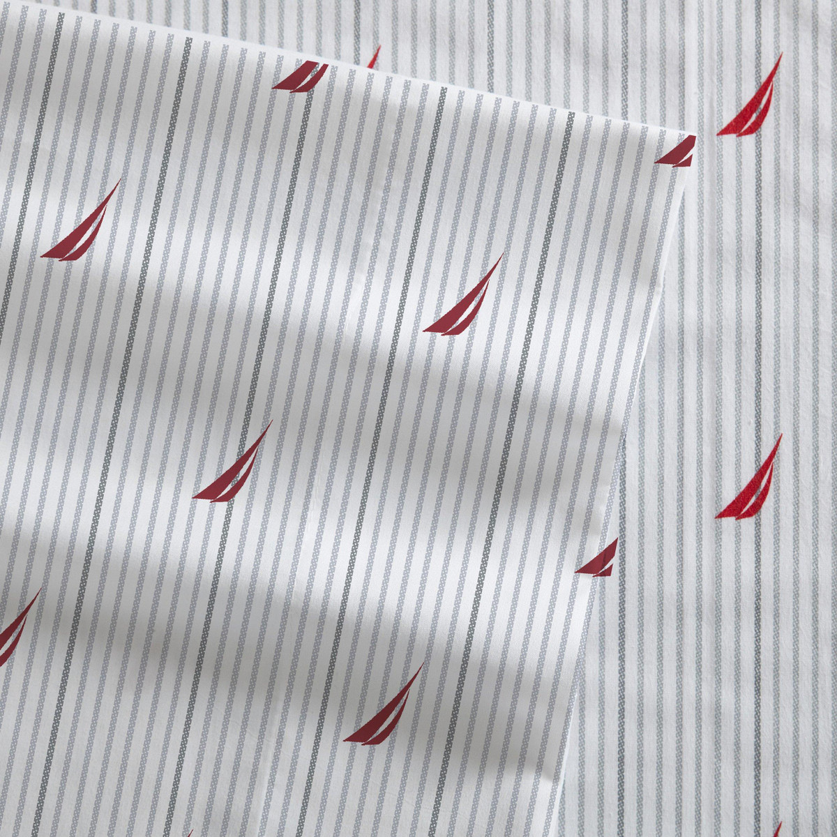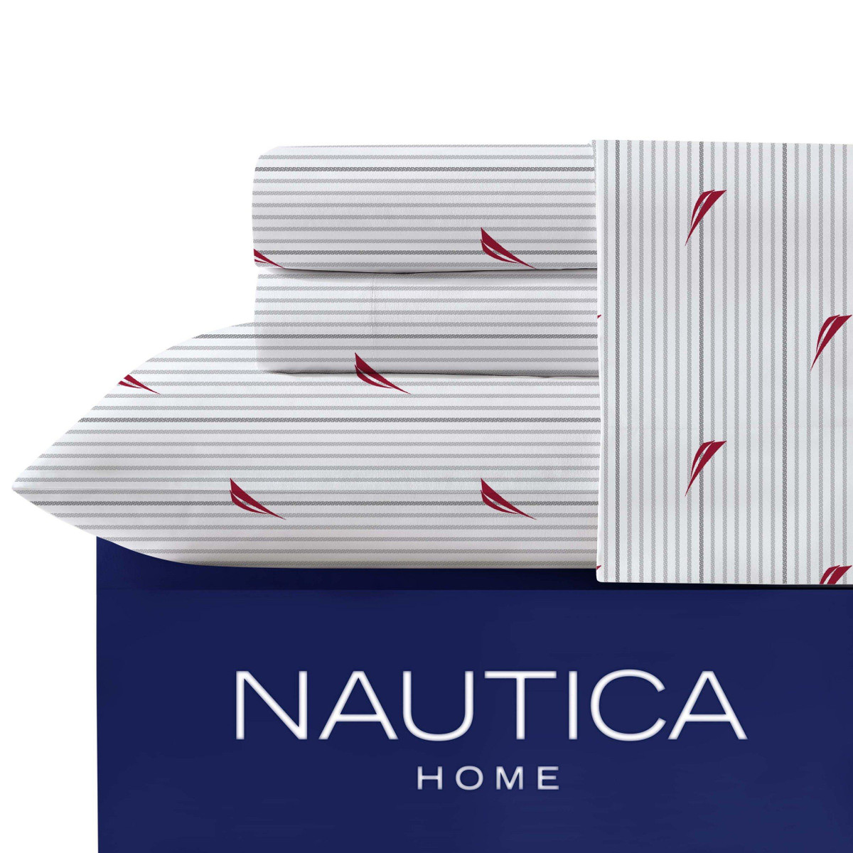 Add a playful touch to your bedding with the Nautica Audley Stripe Sheet Set. Featuring a fun logo and stripe design, this 200 thread count cotton percale set is cool, breathable, and lightweight for lasting comfort. The fully elasticized fitted sheet ensures a snug fit, while the machine-washable fabric makes care easy.