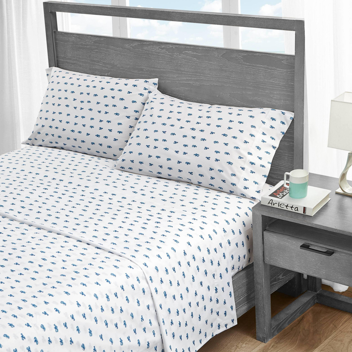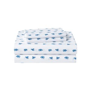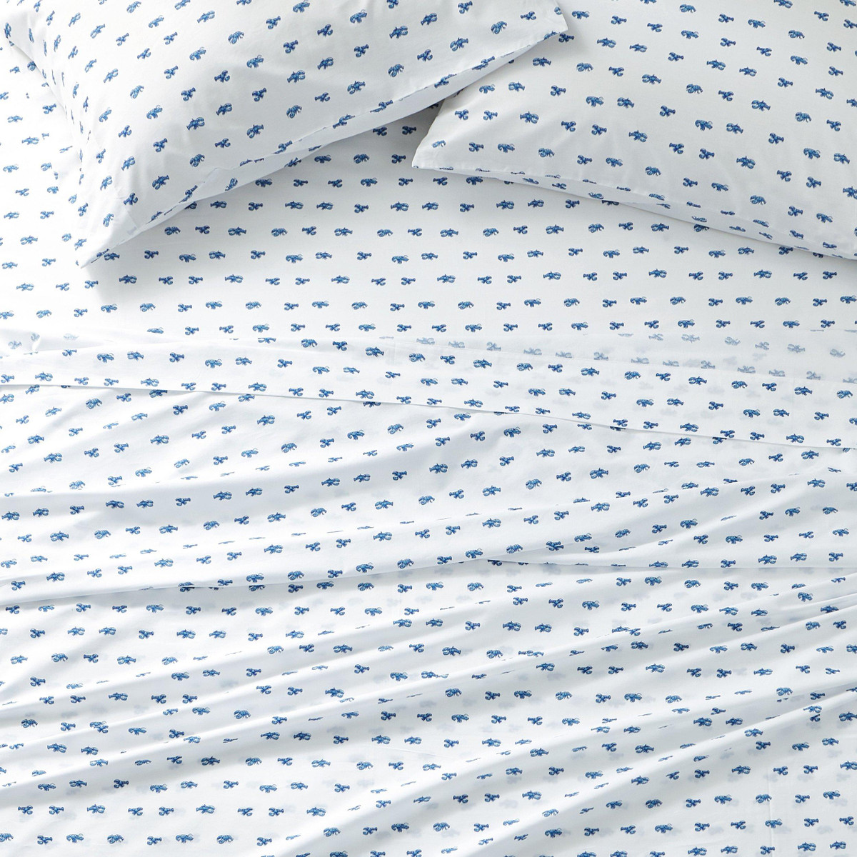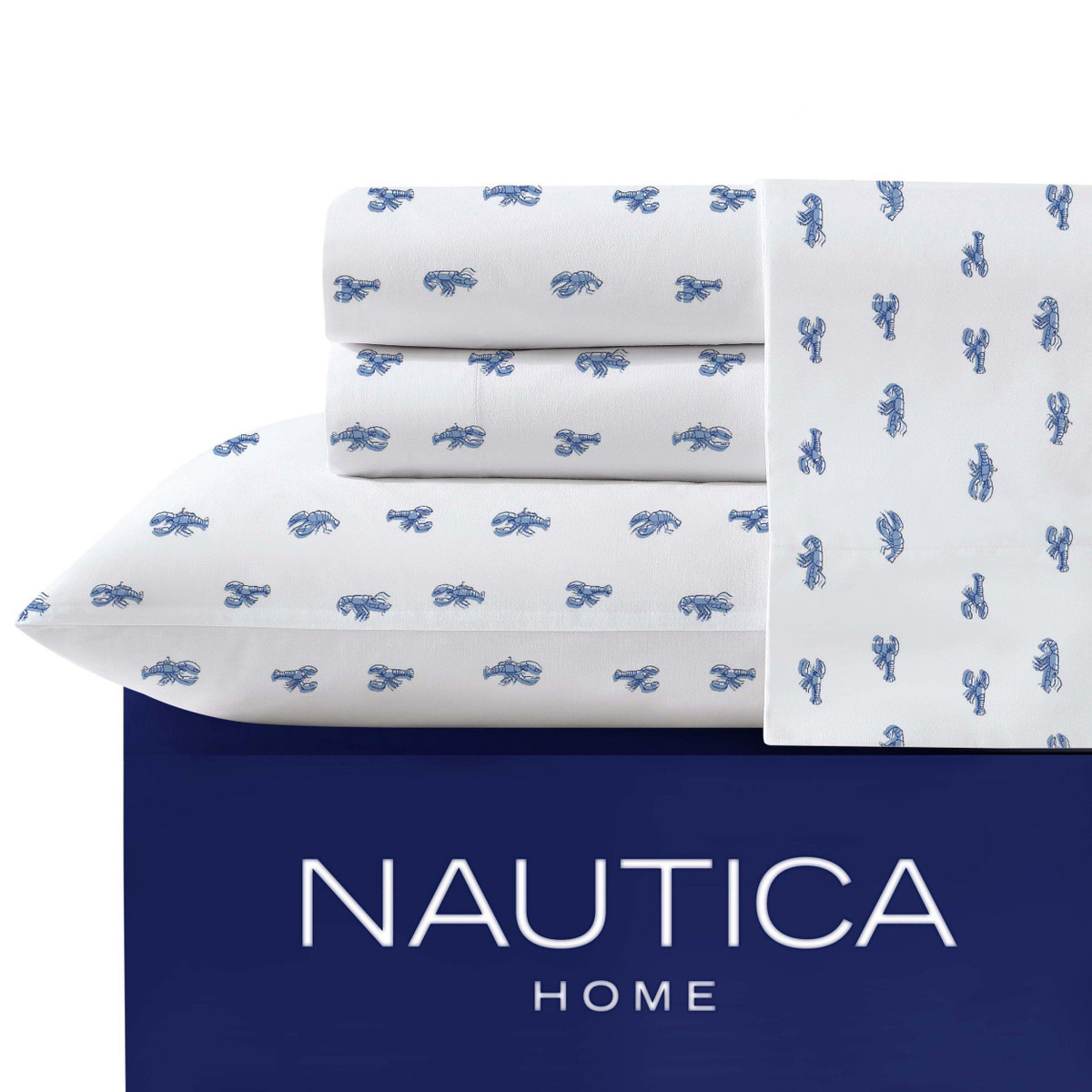 Bring a touch of fun to your familys bedding with the Nautica Cloyster Lobster Sheet Set. Featuring playful lobster prints in calming blue tones, this 200 thread count cotton percale set is cool, breathable, and gentle on skinperfect for kids and adults alike. The fully elasticized fitted sheet stays in place, and the set is machine washable for easy, everyday care.