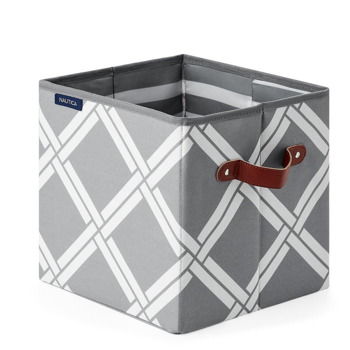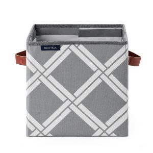This Nautica foldable storage cube is the perfect solution to fashionably elevate your space. This Nautica branded cube comes in trendy grey and white box weave which will blend in seamlessly to almost any décor. The durable handles make it easy to transport throughout the home, while the convenient collapsible design makes it easy to store when not in use. Easy to clean. Measures 10 in. x 10 in. 10 in.