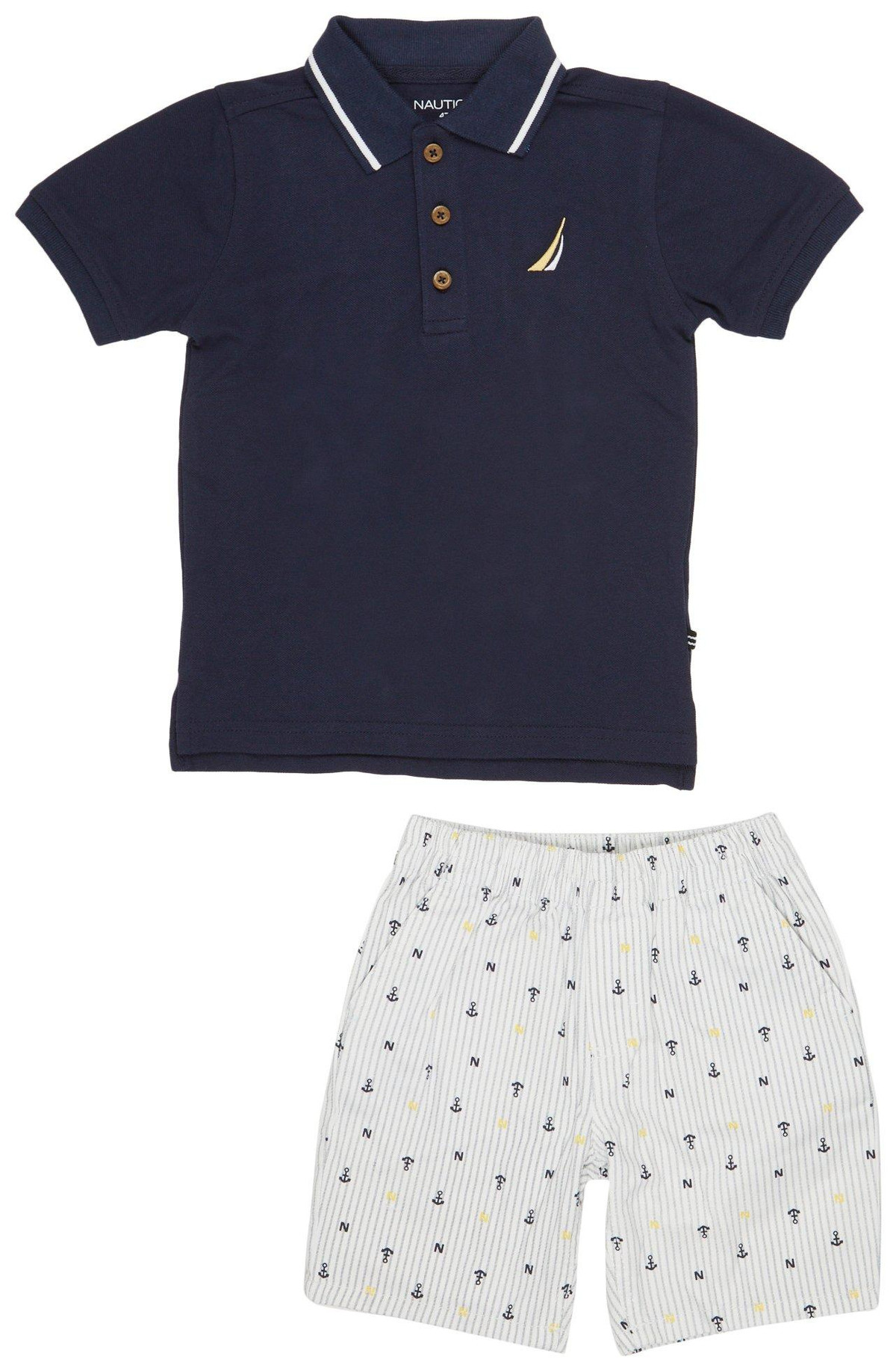 This 2 piece set pairs a stylish collared shirt with easy pull-on shorts featuring fun print patterns. The elastic waist ensures a comfy fit for all-day play while the lightweight fabric adds breathable comfort. Perfect for warm days, this set blends casual charm with playful design for your little one.