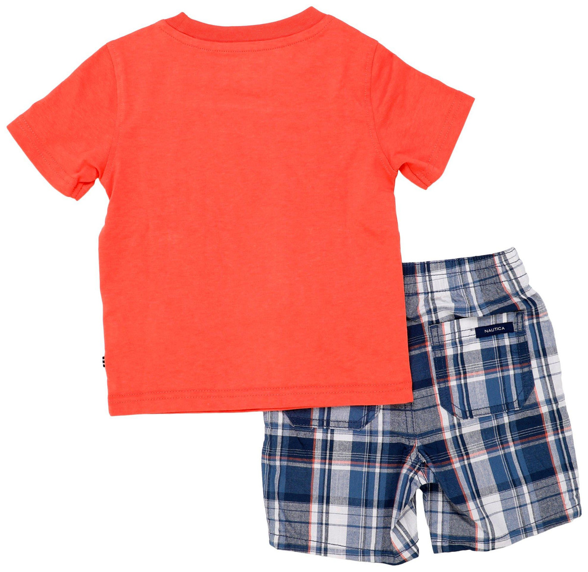 Classic and comfy, this 2-piece set features a solid logo tee paired with matching plaid shorts for an easy, everyday look. Perfect for playtime or laid-back outings, the breathable fabric keeps your little one cool and ready for fun. A timeless combo that’s as versatile as it is adorable! Fabrication is 61% cotton, 39% spandex.