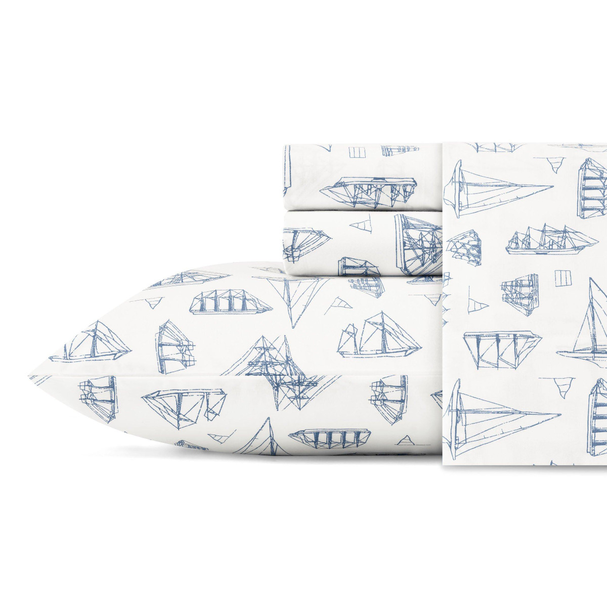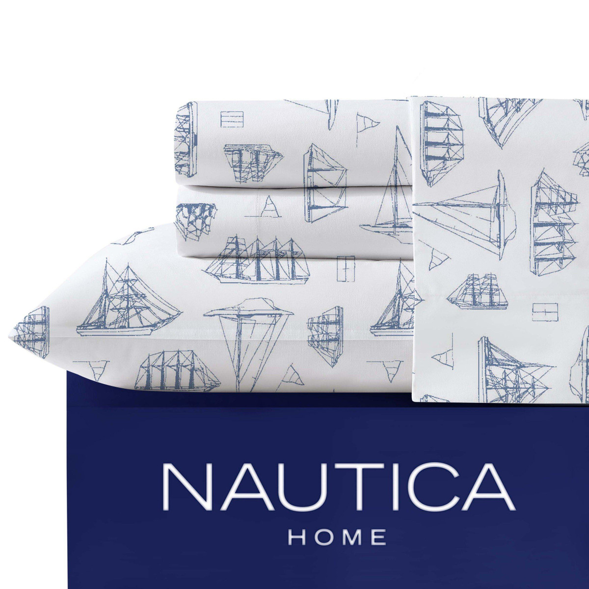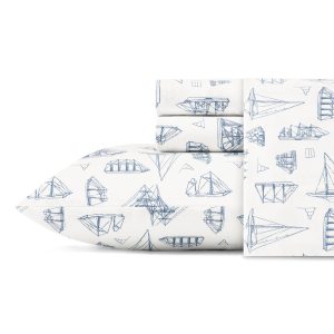 Add a fresh, outdoor vibe to your bedroom with the Nautica Whitewood Sail Sheet Set. Featuring playful sailboat prints on cool, breathable cotton percale, this 200 thread count set offers lightweight comfort. The fully elasticized fitted sheet fits mattresses up to 12 deep and stays securely in place. Machine washable for easy care.