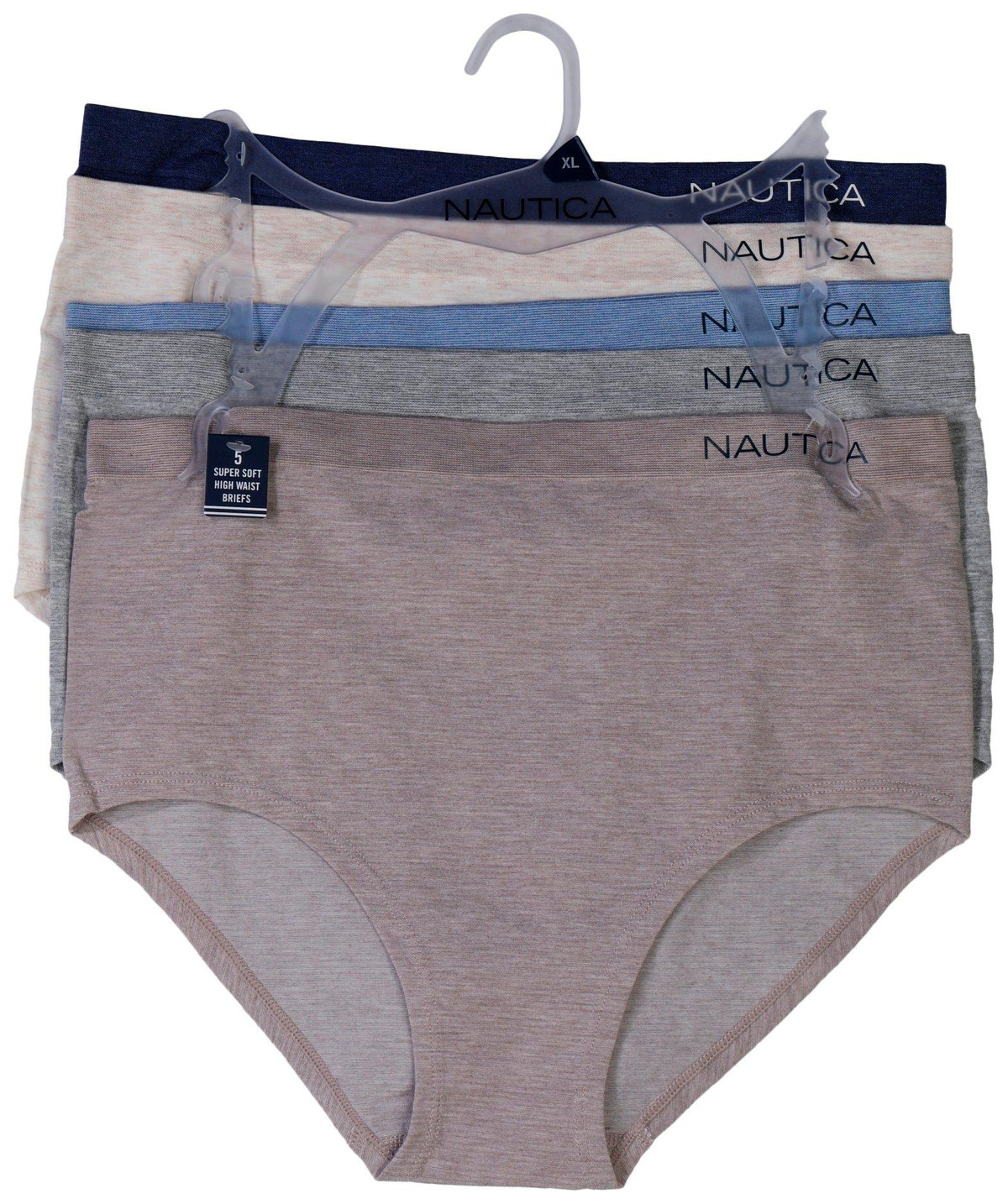 Refresh your essentials with this 5-pack of high waisted brief panties, featuring assorted solid colors on soft fabric. Designed in a flattering high waist brief cut, each pair offers a flexible fit made from a smooth blend of rayon, nylon and spandex. A comfortable choice for daily wear under jeans, skirts or lounge sets. Fabrication is 50% rayon, 47% nylon, 3% spandex.
