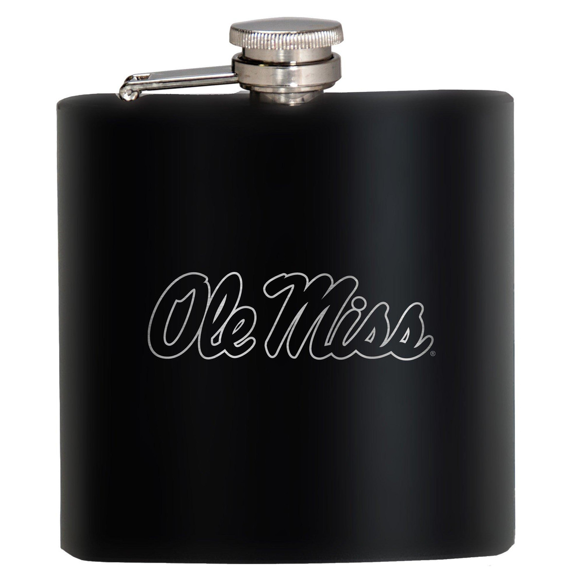Show your team spirit! This Ole Miss Stealth Hip Flask, made of kitchen-grade 18/8 stainless steel, holds 6 fluid ounces. It is powder-coated in a black matte finish and features laser-etched team graphics. Measures 3.75 in. x 1 in. x 4.25 in.