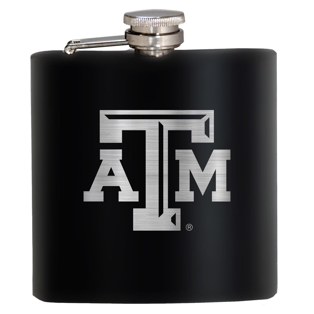Show your team spirit! This Texas A&M Stealth Hip Flask, made of kitchen-grade 18/8 stainless steel, holds 6 fluid ounces. It is powder-coated in a black matte finish and features laser-etched team graphics. Measures 3.75 in. x 1 in. x 4.25 in.