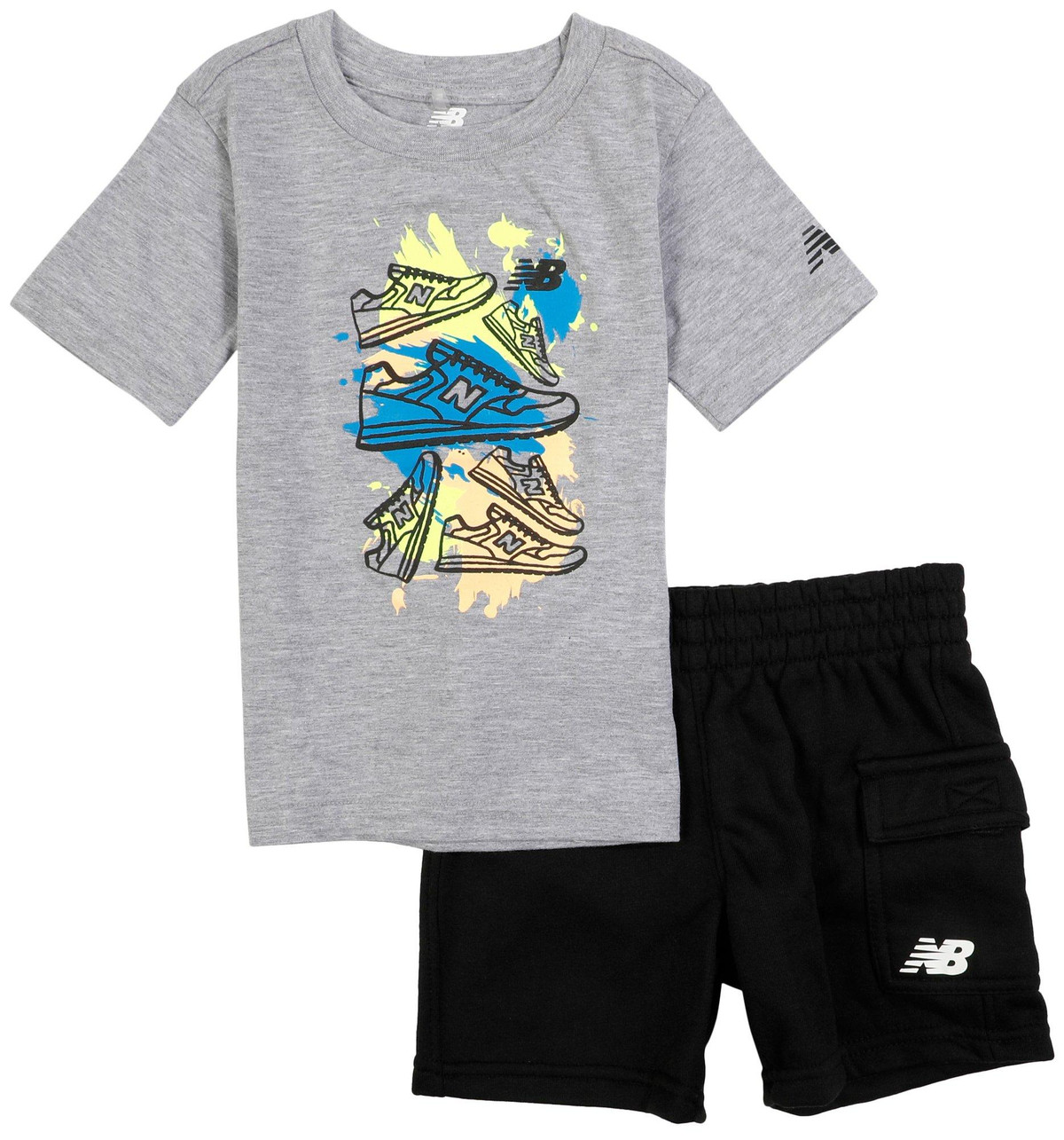 This Little Boys Active 2-Piece Shorts Set includes a logo screen print t-shirt and easy pull-on cargo shorts. Made from a soft 60% cotton, 40% polyester blend, it is designed for comfort and active play all day long.