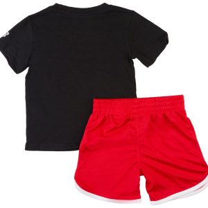 The Little Boys Active 2 Piece Shorts Set includes a short sleeve graphic shirt paired with pull on short. This comfy and fun combo is perfect for everyday wear, keeping little ones stylish and ready for action.