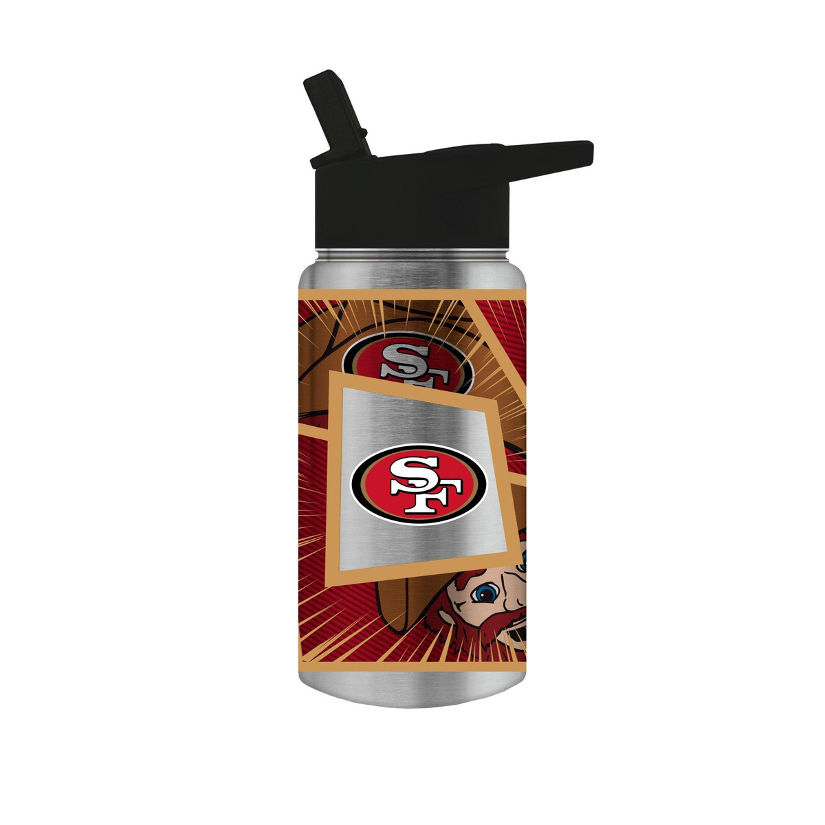 Show your team spirit! This San Francisco 49ers Mini Thirst water bottle is double-walled and vacuum-insulated and holds 16 fluid ounces. It features is a 360-degree wrap featuring team mascots. Measures 2.8 in. x 3.8 in. x 7.5 in.
