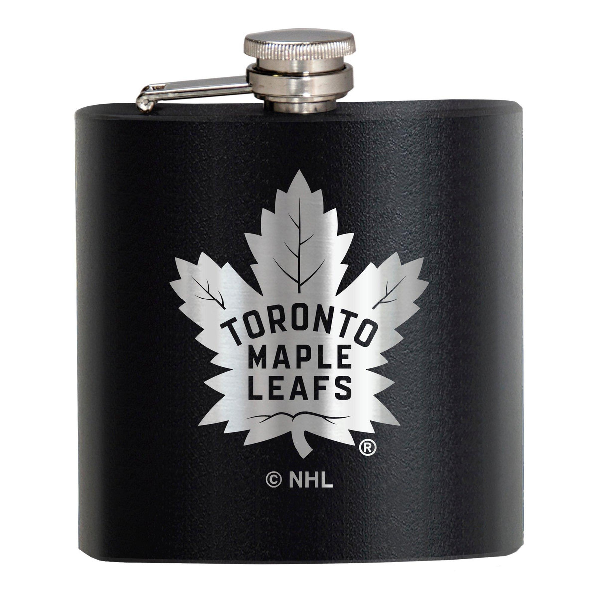 Show your team spirit! This Toronto Maple Leafs Stealth Hip Flask, made of kitchen-grade 18/8 stainless steel, holds 6 fluid ounces. It is powder-coated in a black matte finish and features laser-etched team graphics. Measures 3.75 in. x 1 in. x 4.25 in.