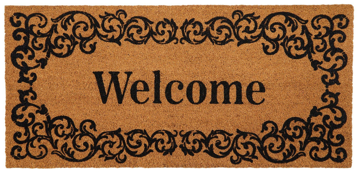 Welcome guests in style with the 22×47 Welcome Coir Door Mat. Made from durable, eco-friendly coir, this mat features a classic Welcome design that adds warmth and charm to your doorstep. Its natural fibers effectively trap dirt and moisture, keeping your entryway clean while adding a welcoming touch to your home.