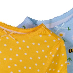 This Nicole Miller three piece pajama set for little girls includes ruffled shorts, matching pants, and a button down top with ruffled short sleeves. Made from 100% polyester, the fabric is soft and gentle for a cozy night’s sleep with a touch of playful elegance.