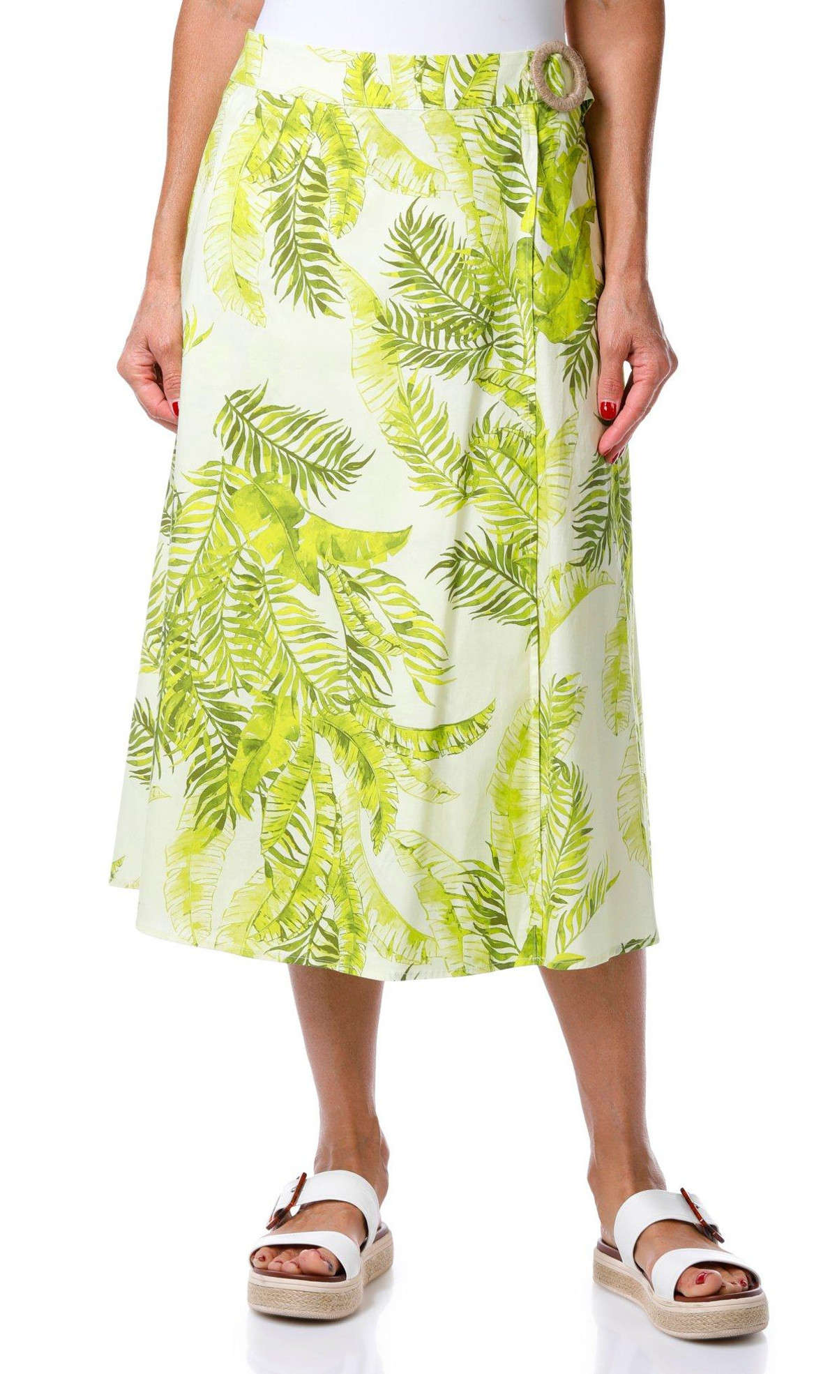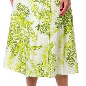 Capture the spirit of the tropics with this ankle length wrap maxi skirt featuring an allover leaf print. Made from a breathable blend of polyester, cotton, and spandex, it offers a soft feel with just the right amount of stretch. The wrap design flatters your figure while allowing easy movement, making it a breezy choice for beach days, vacations, or sunny strolls.