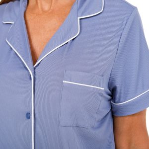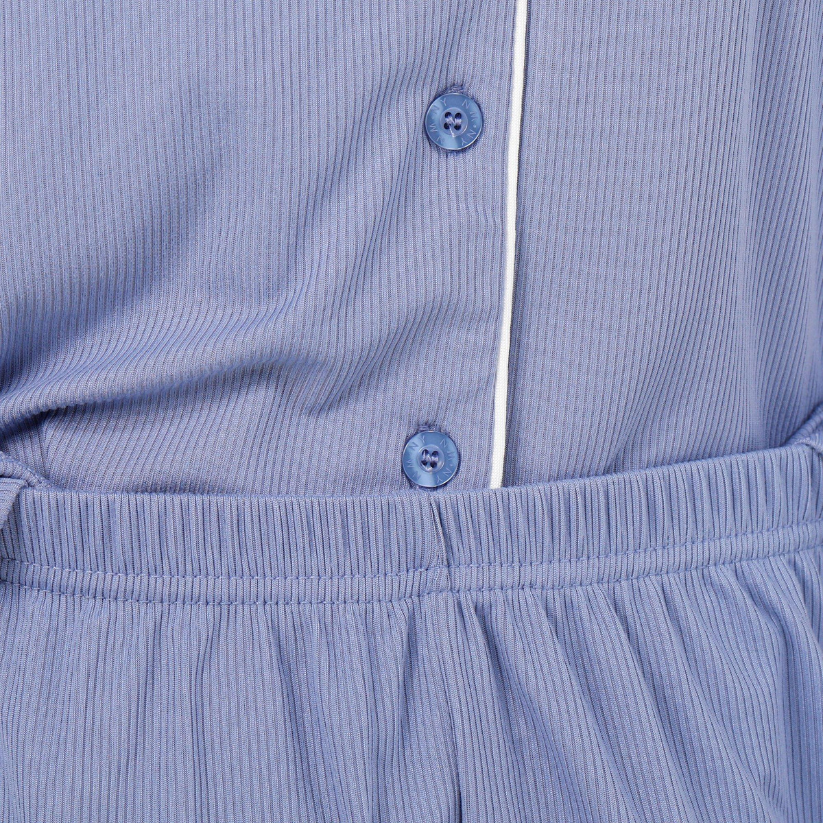 Relax in effortless style with our Women’s 2 Pc Ribbed Sleepwear Set. Featuring a solid color design, this cozy set includes a short sleeve button-down top and matching shorts made from soft ribbed fabric. Fabrication 95% polyester, 5% spandex