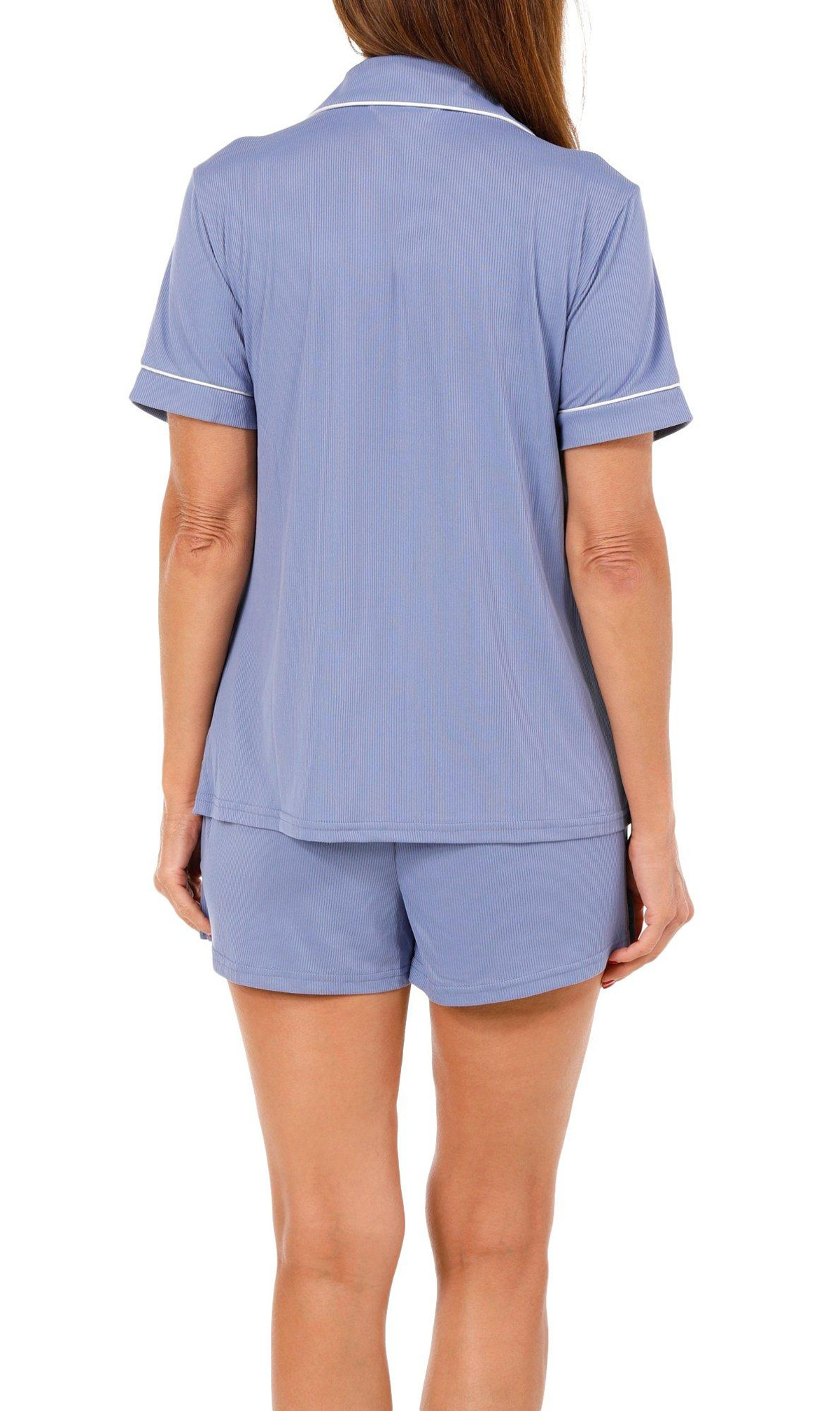 Relax in effortless style with our Women’s 2 Pc Ribbed Sleepwear Set. Featuring a solid color design, this cozy set includes a short sleeve button-down top and matching shorts made from soft ribbed fabric. Fabrication 95% polyester, 5% spandex