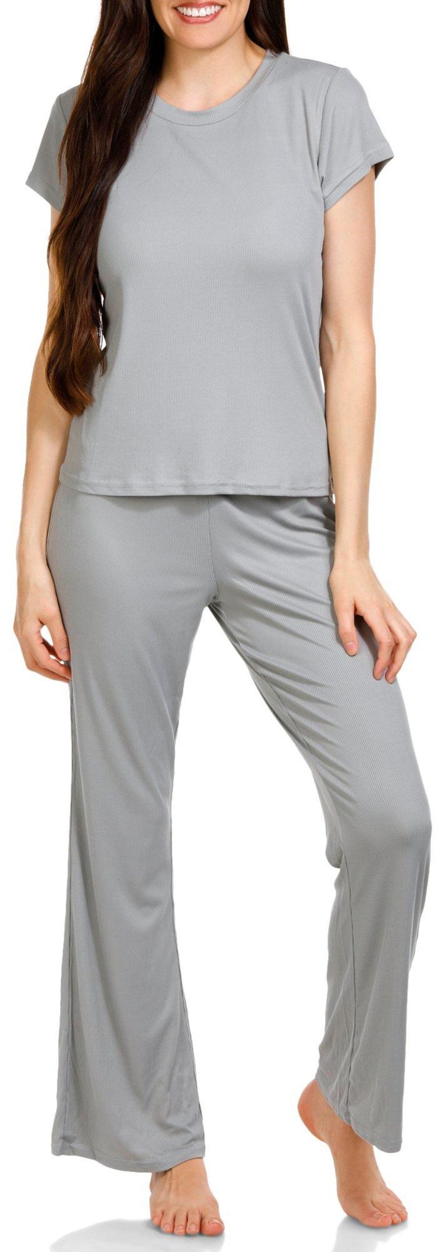 Unwind in our Women’s 2-Piece Sleep Set, crafted from a soft blend of polyester and spandex. This stylish set features a solid color, a comfortable short sleeve top, and wide leg pants, perfect for a cozy night’s sleep or lounging at home. Enjoy the perfect combination of elegance and relaxation with this versatile sleepwear set.