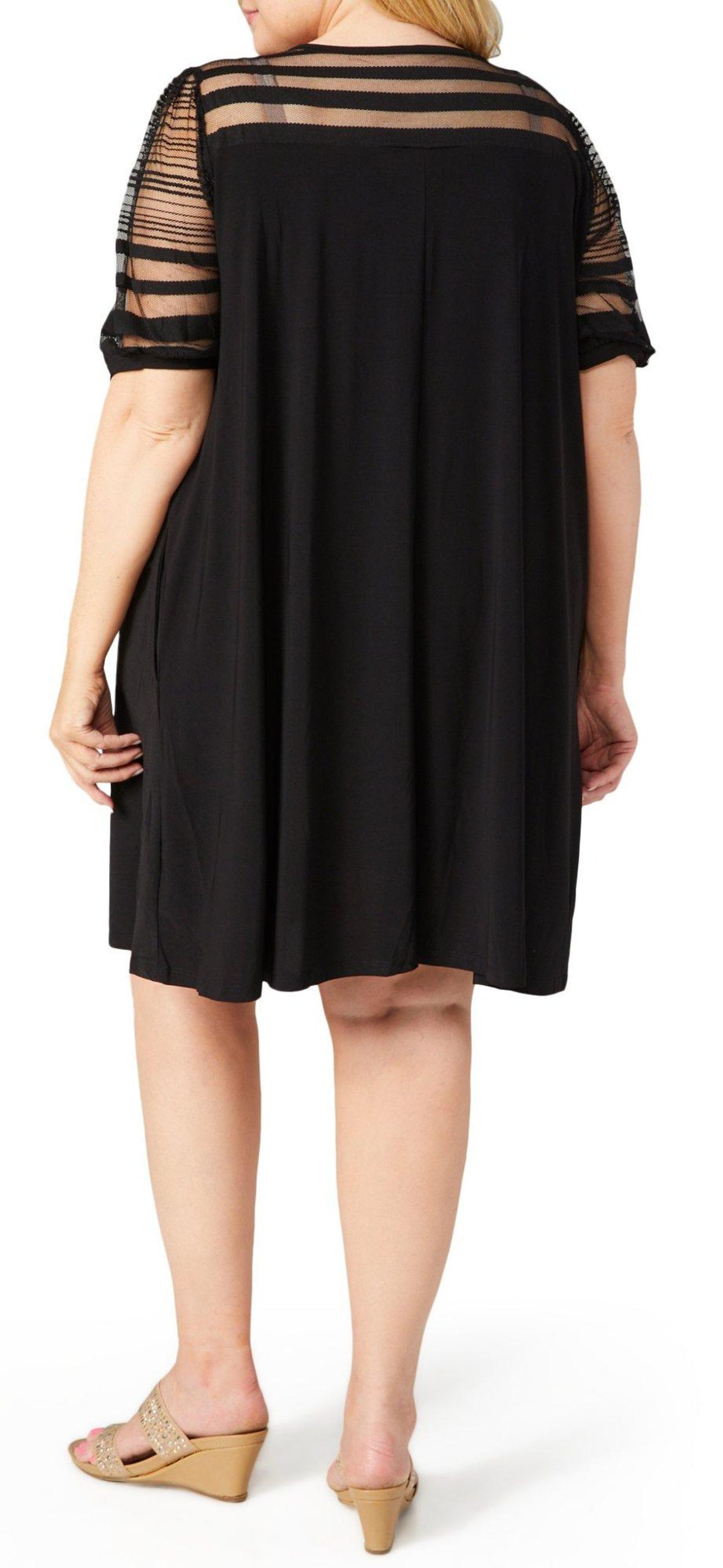 Step into contemporary elegance with this Short Sleeve Dress. Featuring stylish mesh accents and double side slip pockets, this knee-length dress combines practicality with modern flair. The lightweight fabric ensures comfort and ease, making it perfect for any occasion. Whether you’re dressing up for a special event or keeping it casual, this dress offers a versatile look that can be easily accessorized to suit your personal style. Fabrication is 95% polyester, 5% spandex.