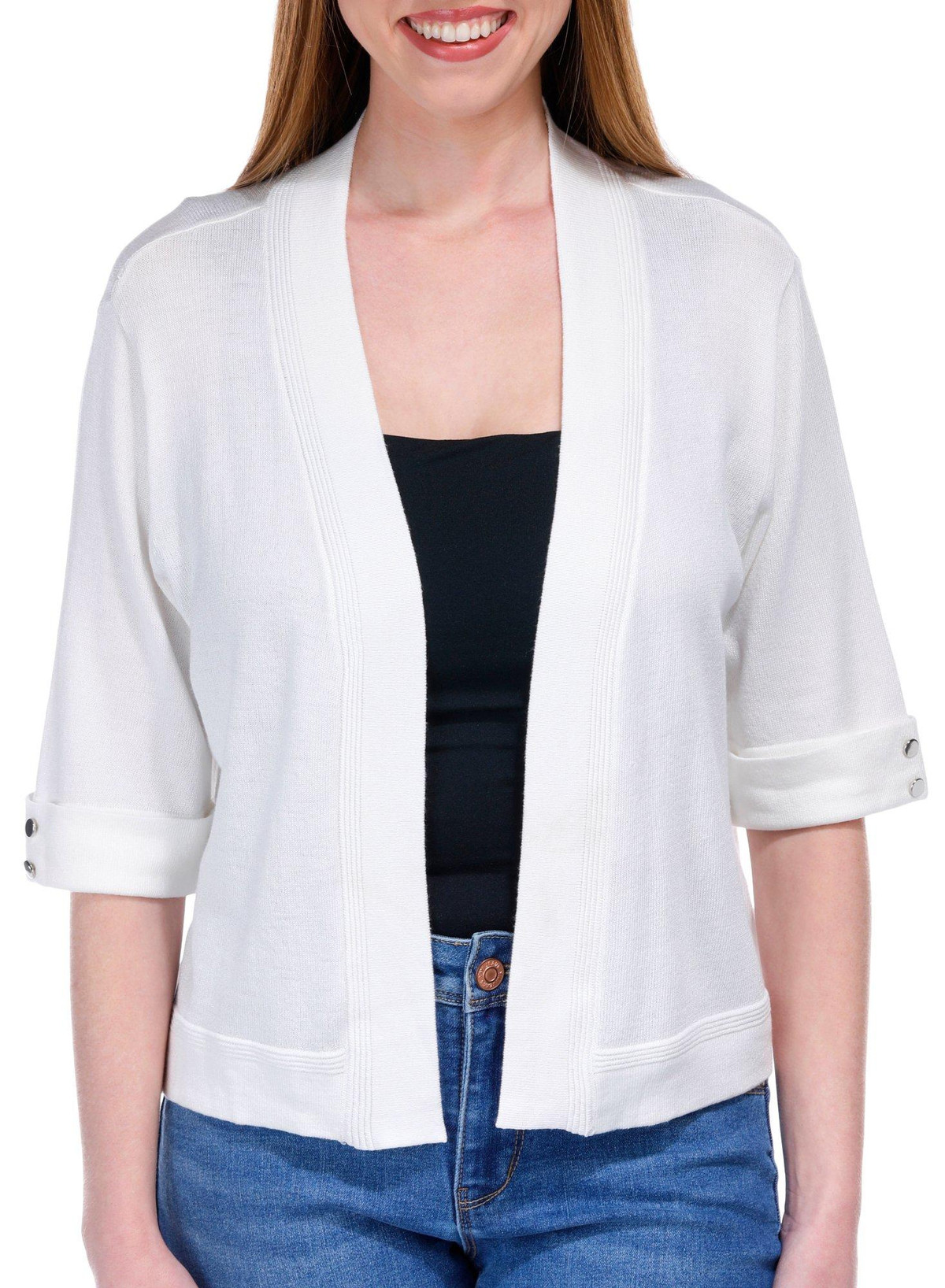 Add a touch of elegance to your ensemble with this 3/4 Sleeve Bolero Shrug, designed with an open front for effortless layering. Perfect for both casual and formal occasions, this shrug offers a refined and stylish element to any outfit. The 3/4 sleeves provide just the right amount of coverage, making it a versatile addition to your wardrobe. Fabrication is 72% rayon, 28% polyester.
