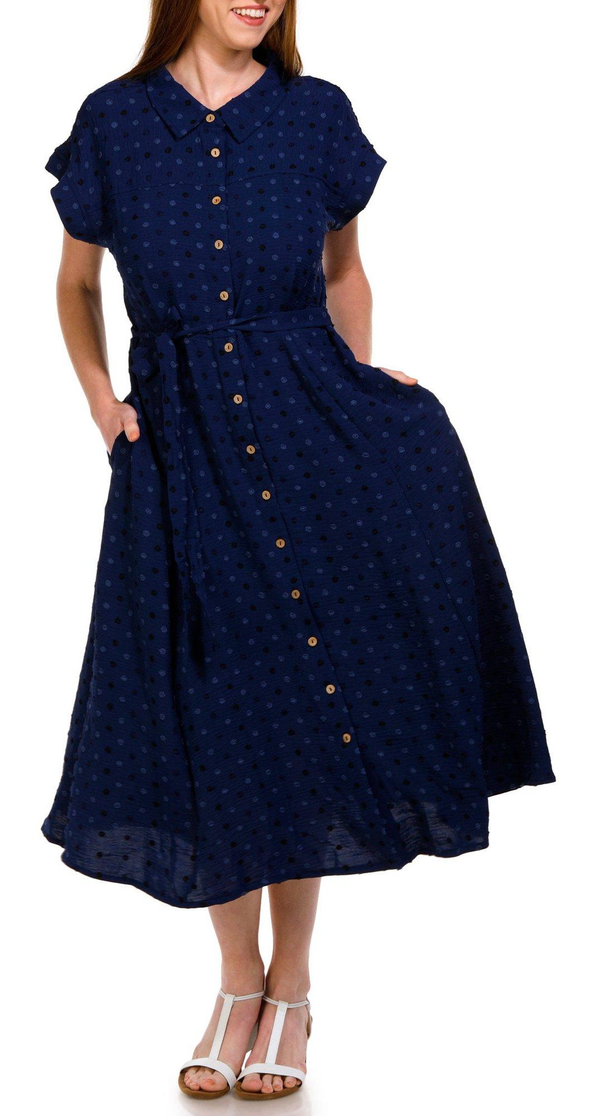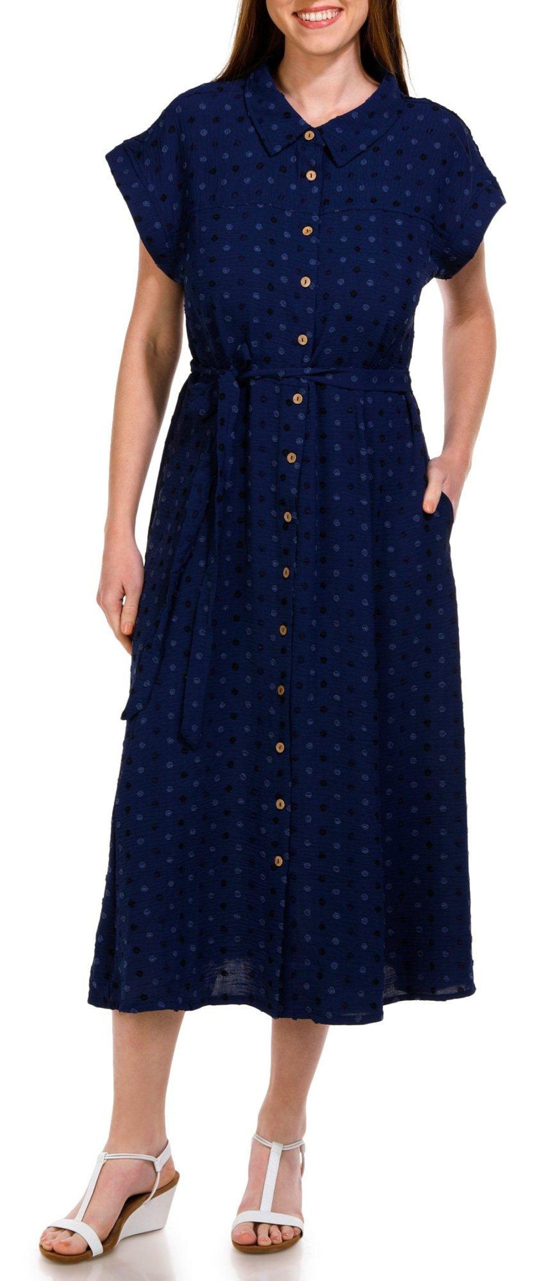 Nina Leonard Womens Short Sleeve Midi Shirt Dress