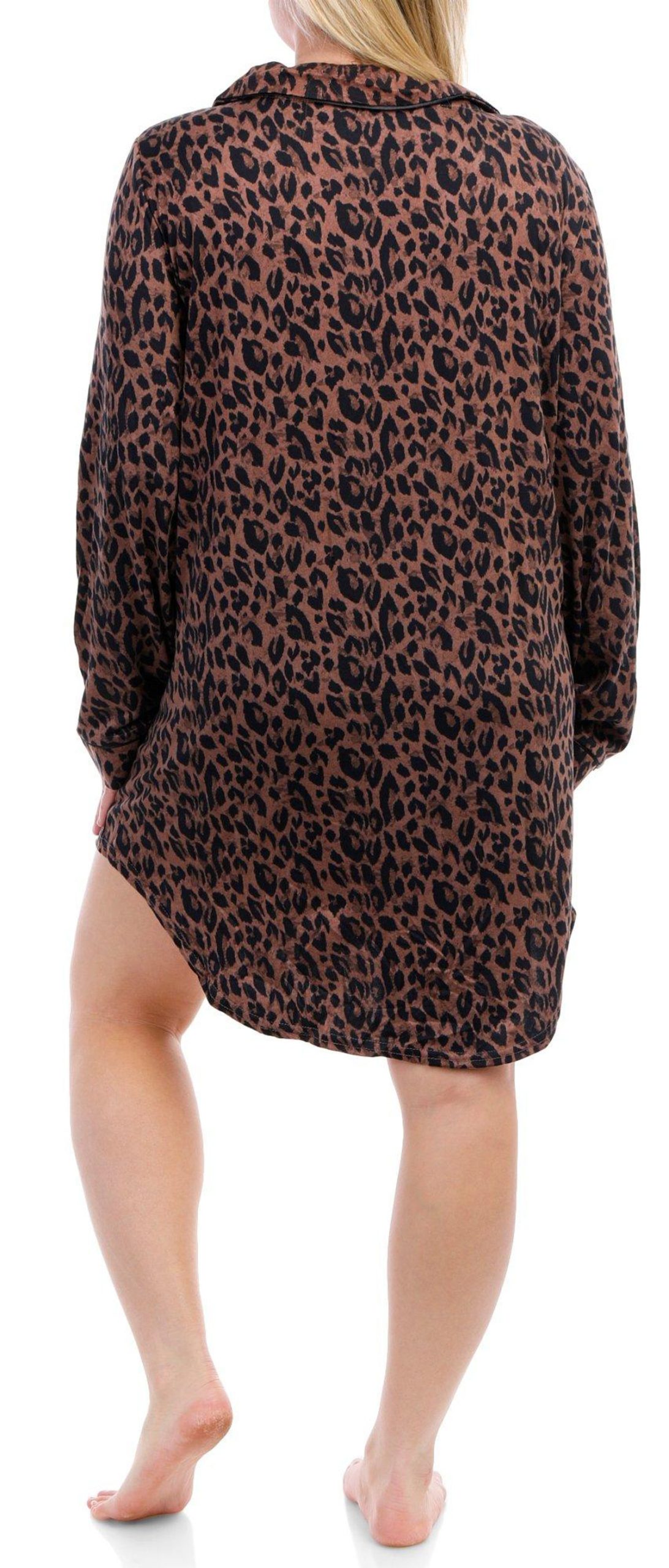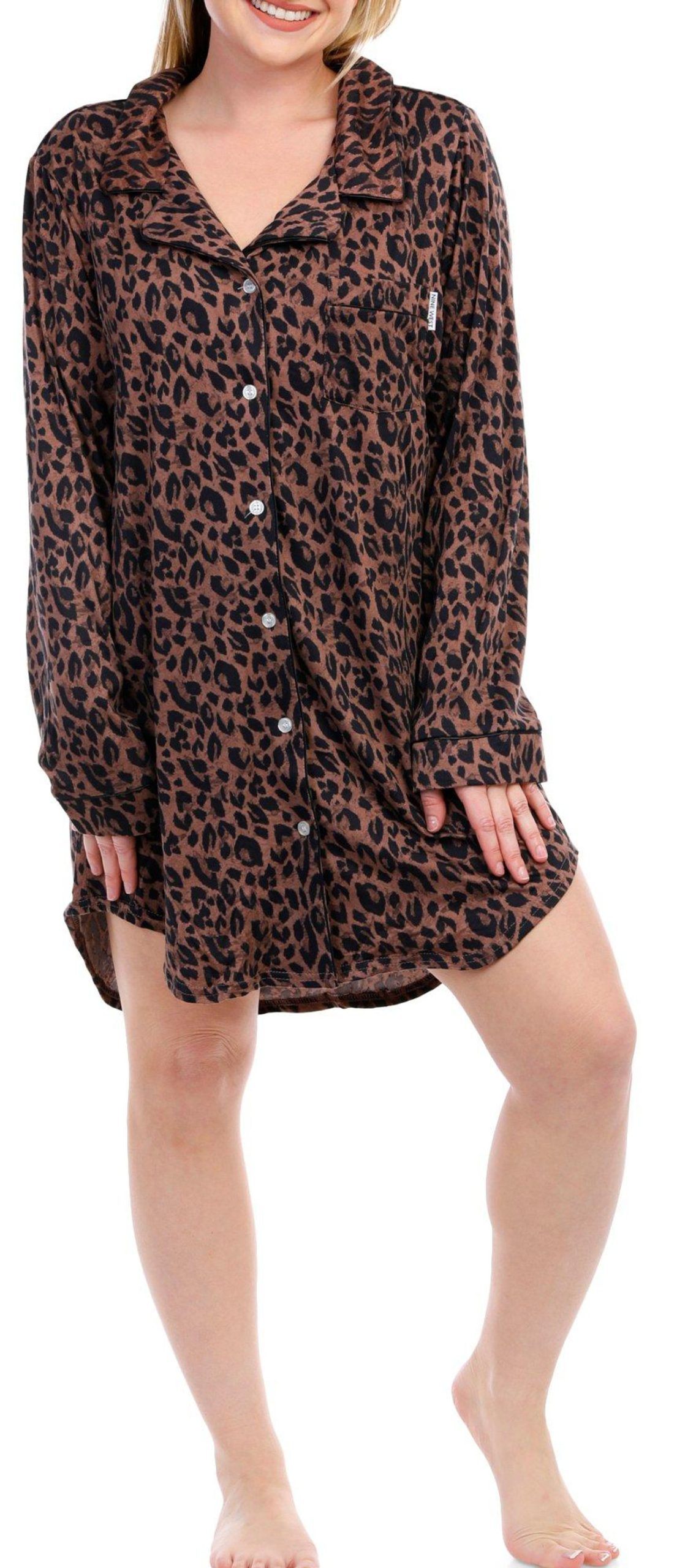 Cozy up in style with our Long Sleeve Sleepshirt. This sleepshirt features a wild animal print pattern and a classic buttoned front, adding a touch of elegance to your nighttime routine. The collared neckline and chest pocket provide a timeless look, while the soft fabric ensures a comfortable and restful sleep. Perfect for lounging or sleeping, this sleepshirt combines sophistication and comfort effortlessly. Fabrication is 93% polyester and 7% elastane.