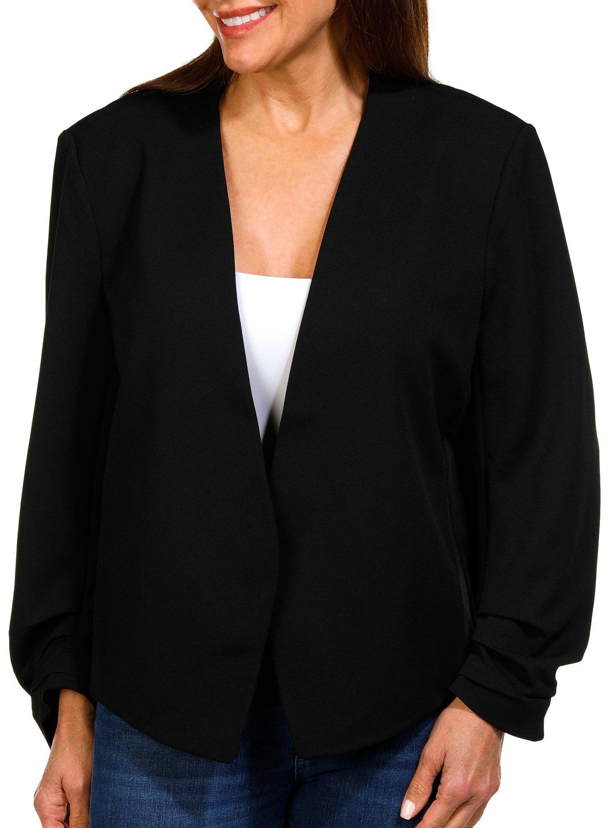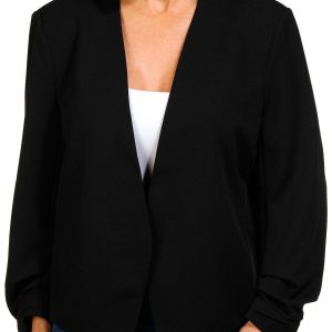 Introducing the Women’s Cool Crepe Open Front Blazer, a stylish blend of elastane and polyester designed for modern elegance. This blazer features an open front design, long sleeves, and padded shoulders, offering a sophisticated silhouette that enhances any outfit. Perfect for professional settings or chic casual wear, this blazer combines comfort with a polished look, making it a versatile addition to your wardrobe.