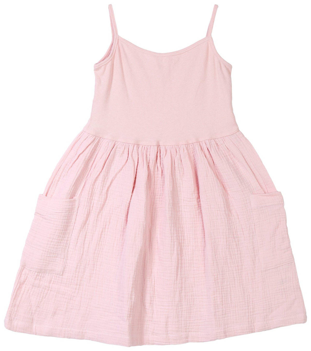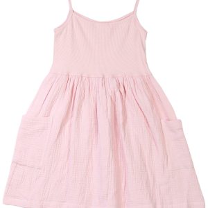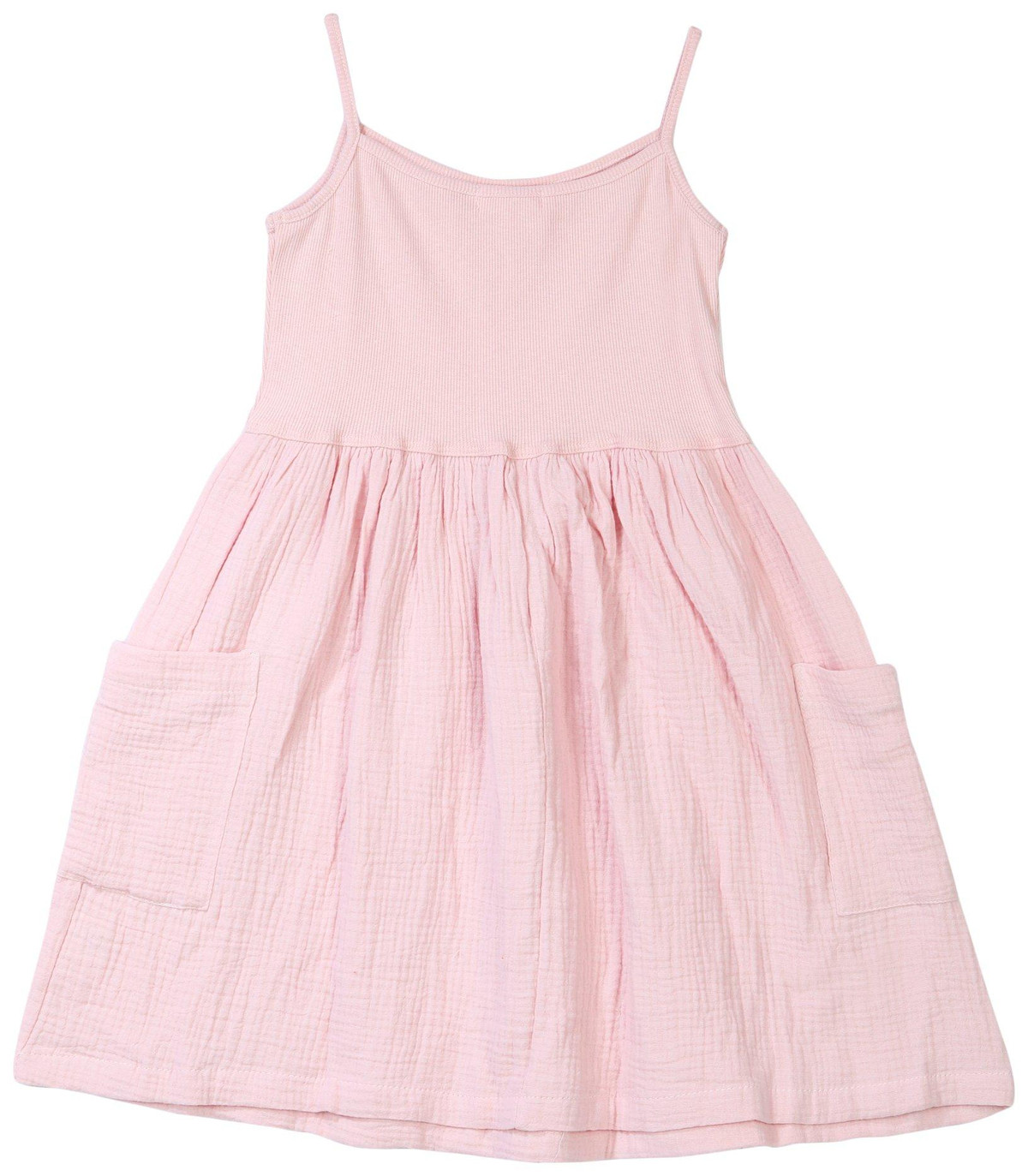 Infuse casual ease into her wardrobe with the Girls Short Dress with Cargo Pockets. This stretch knit dress features two outside cargo pockets and a relaxed silhouette designed for comfort and mobility. The soft fabric allows freedom during play and everyday wear. Ideal for casual outings and active days. Machine wash cold for easy care.