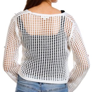 Introducing the Juniors Crochet Cherry Tie Front Cardigan, made from 100% acrylic for a soft and comfortable feel. This adorable cardigan features a tie front closure and an open crochet body, perfect for layering. The long sleeves and knit cherry embellishments add a playful touch, while the 18-inch length provides a flattering fit. Ideal for adding a fun, whimsical element to your wardrobe, this cardigan is a must-have for any fashion-forward junior.