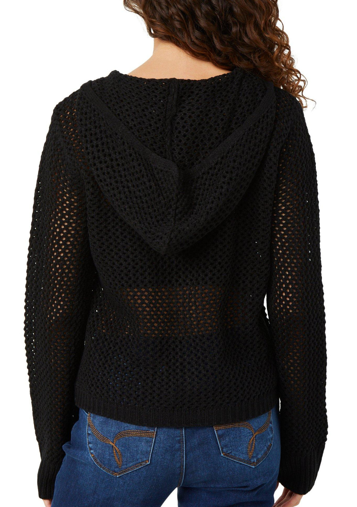 Stay stylish with the Juniors Knit Zip Up Jacket. Featuring a breathable knit body, this solid-colored jacket includes long sleeves, a hooded neckline, and a full zip front. Fabrication 100% acrylic