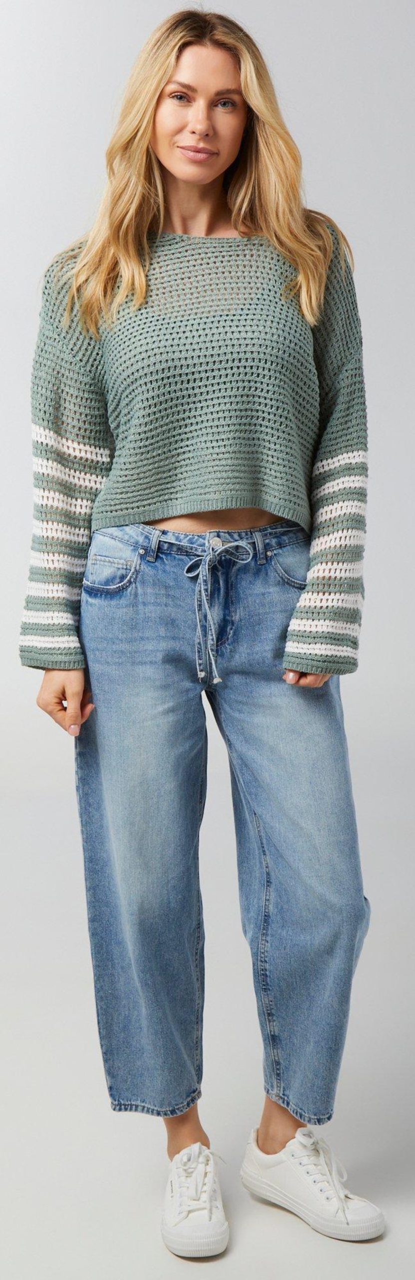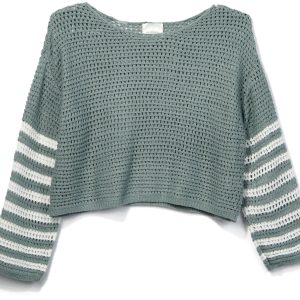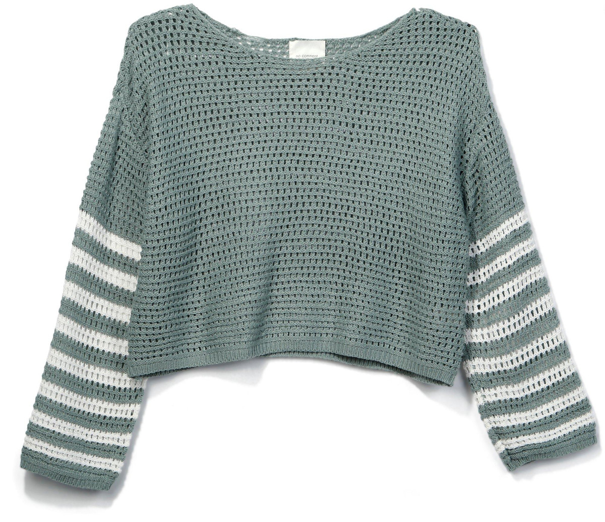 No Comment Juniors Long Sleeve Open Weave Boat Neck Sweater