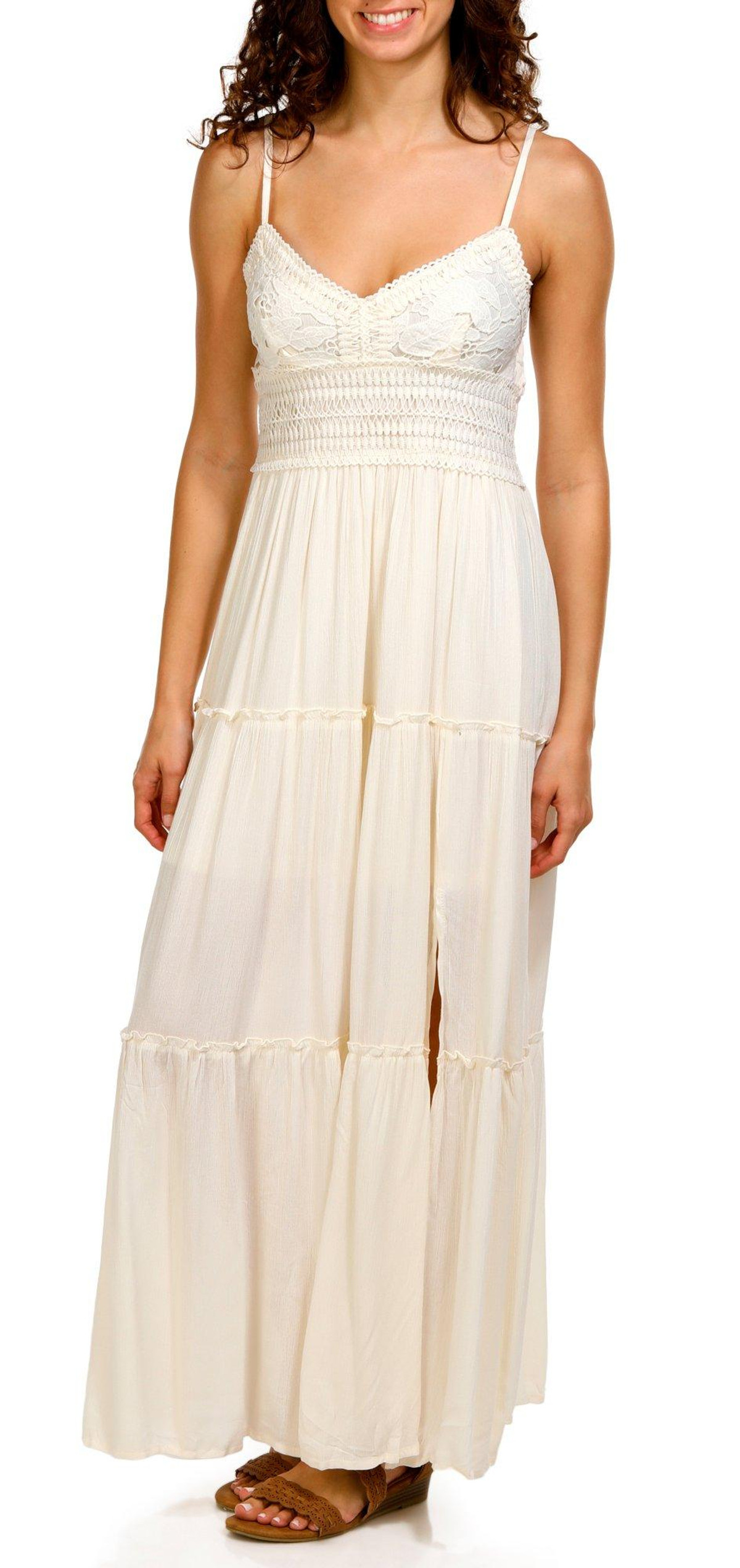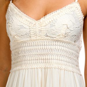 The Juniors Maxi Dress, crafted from 100% rayon with 100% polyester lining, features a stylish crochet design with stretchy smocked back on the bodice. Featuring adjustable spaghetti straps, this dress offers a perfect combination of comfort and elegance, making it ideal for any occasion.
