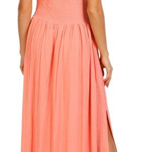 The Juniors Maxi Dress, crafted from 100% rayon with 100% polyester lining, features a stylish crochet design with stretchy smocked back on the bodice. Featuring adjustable spaghetti straps, this dress offers a perfect combination of comfort and elegance, making it ideal for any occasion.