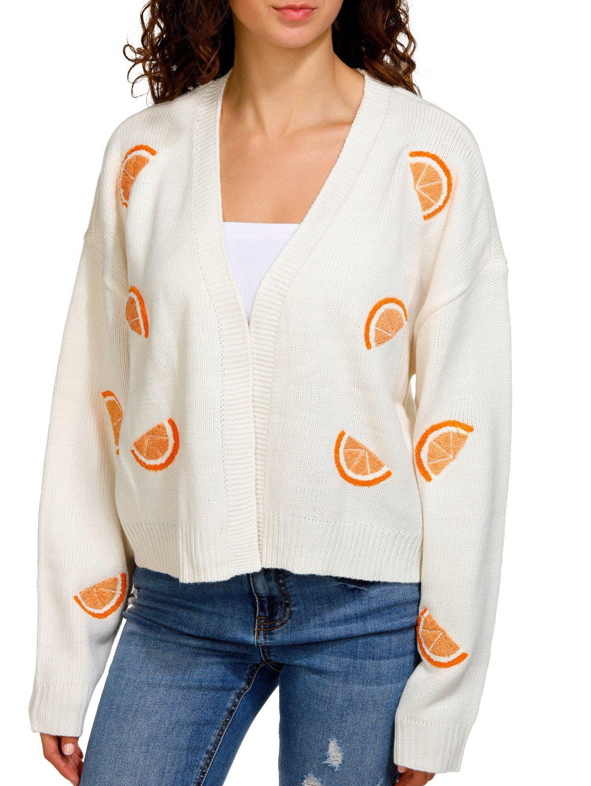 Add a playful touch to your wardrobe with our Juniors Orange Slice Patch Cardigan, made from 100% acrylic for cozy comfort. This charming cardigan features unique orange slice patches, a button-down closure, and a 20-inch length, making it perfect for layering over your favorite tops. Whether you’re heading out for a casual day or looking to brighten up your outfit, this cardigan offers a fun and stylish option.